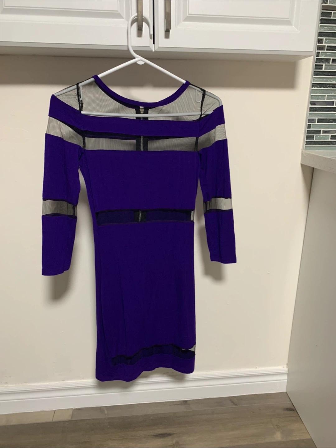 Selling a cute purple dress with mesh detailing. It's a great piece for a night out or a special occasion. The dress is in great condition and ready for a new home!Worn once. Closet clean up. Size XS