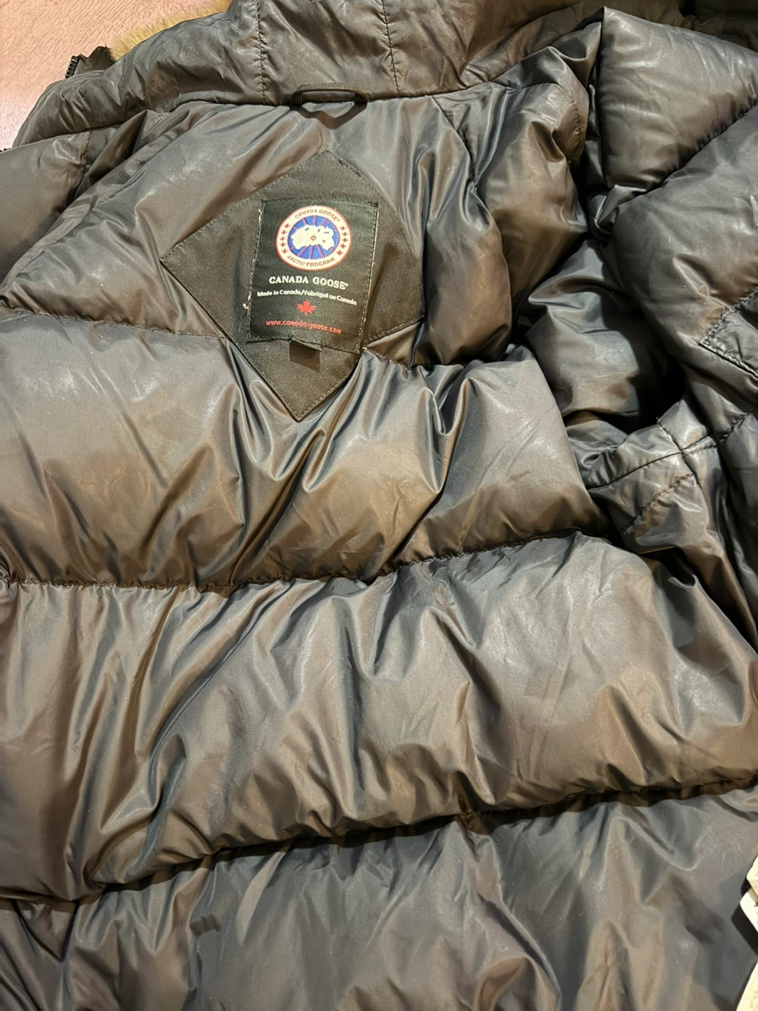Selling a Canada Goose bomber jacket in size M/M. There is some wear and tear on the side of the jacket, as shown in the pictures. Still a great jacket for cold weather! need dry clean