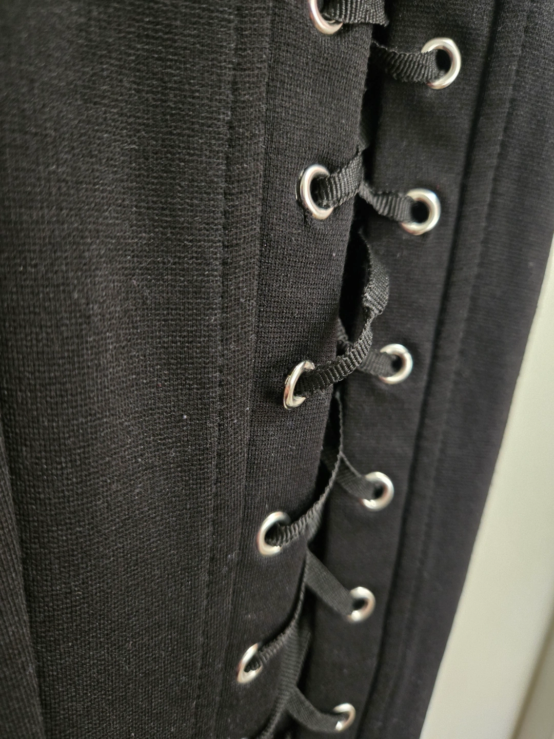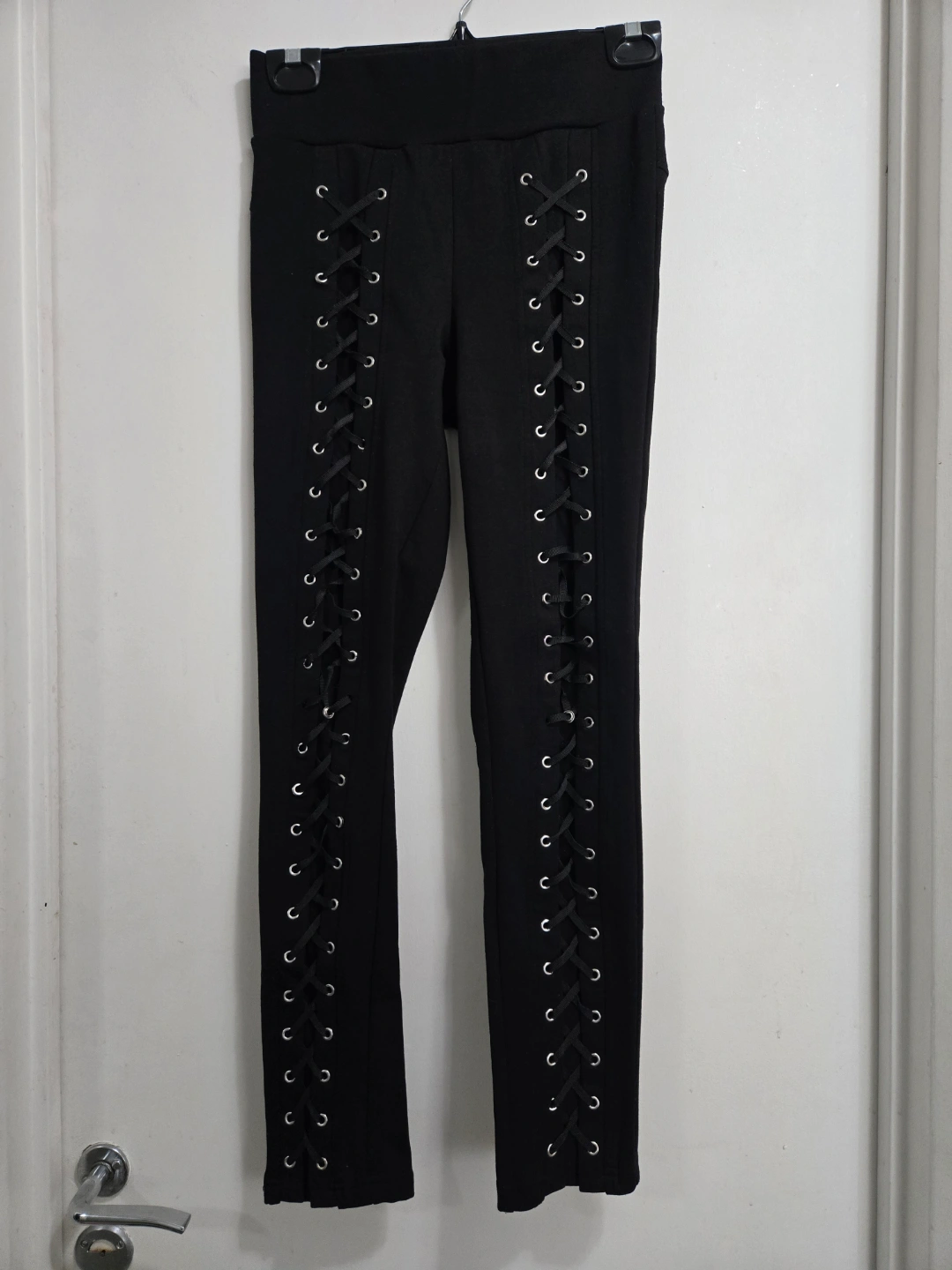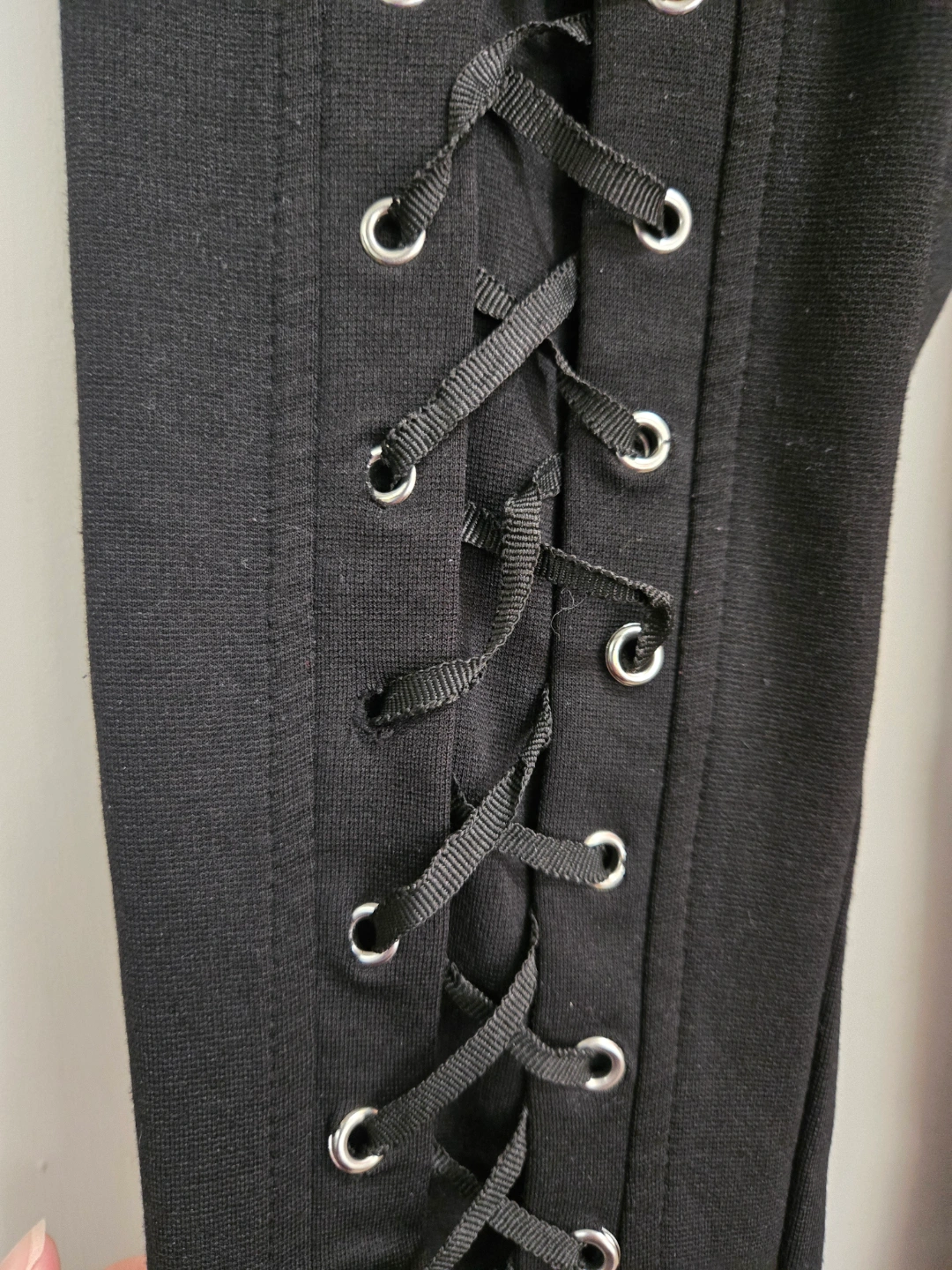 Black corset style size S high rise leggings from Hot Topic. Honestly sooooo hot and flattering! A couple grommets loose/detached, hard to notice when worn!