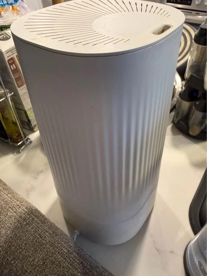 PureGuardian humidifier in white. Features a top-fill 1-gallon tank that runs up to 70 hours, perfect for medium to large rooms. Uses ultrasonic technology for quiet mist dispersal, offering relief from dry air. Easy to use with 3 mist speeds and a low water indicator. The 7-color nightlight adds a calming ambiance, great for kids' rooms or nurseries. Helps with colds, allergies, and dry skin. Compact design fits well on desks, nightstands, or in nurseries. Silver Clean Protection fights mold and mildew in the tank. You can add essential oils for aromatherapy. No pads or wicks to clean. Auto shut-off when empty.