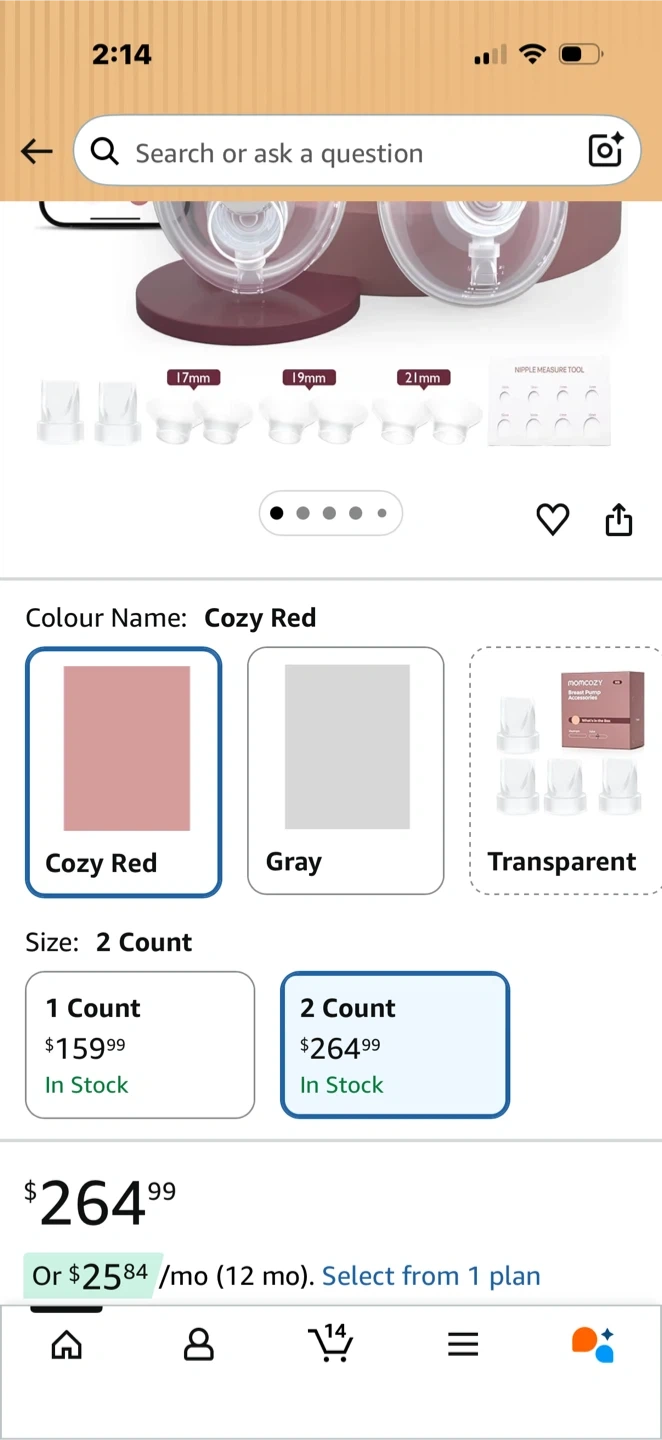 This is the Momcozy M5 wearable breast pump, it's a portable and hands-free device. It comes with two pumps and includes a carrying case. Available in Cozy Red.