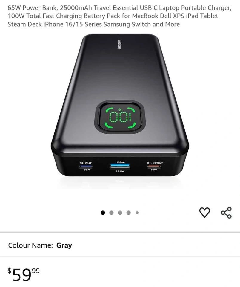 65W Power Bank, 25000MAH portable laptop charger