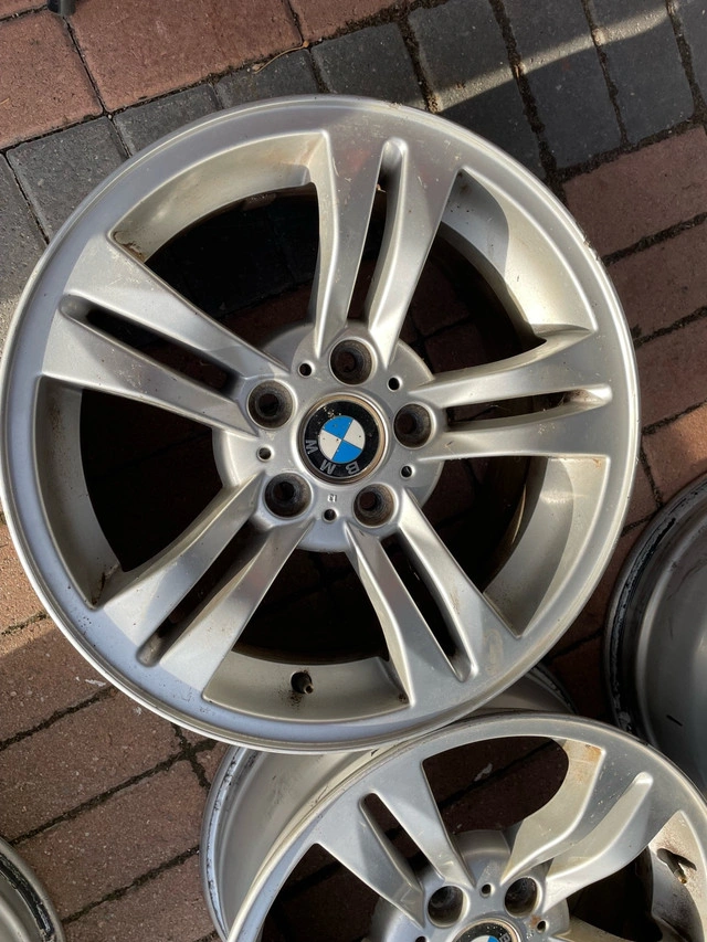 Priced cheap. (Brought for my previous X3 for winter tires for $400). Pls. Refer to pictures for spec for other year model Fitment. Two rims have very minor curb marks. Made in Austria, OEM Original. Brought for my 2010 BMW X3 winter wheels (X3 is sold). Tyres on it are worn, removed to store in the shed.