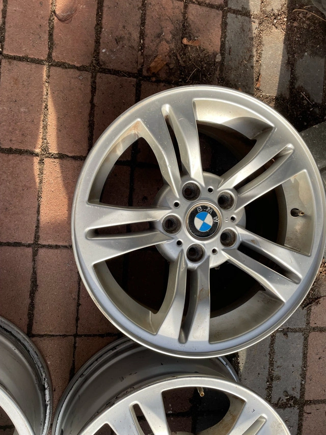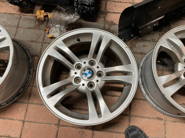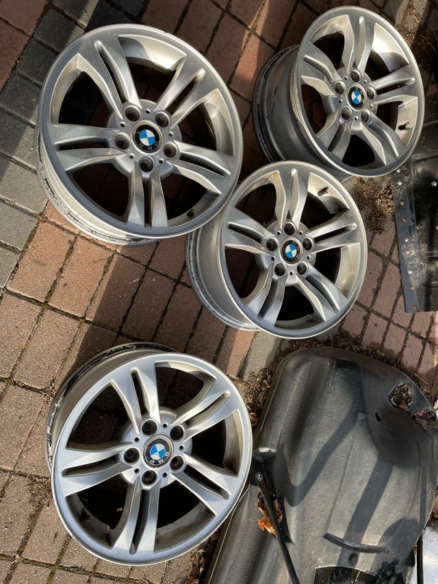 Priced cheap. (Brought for my previous X3 for winter tires for $400). Pls. Refer to pictures for spec for other year model Fitment. Two rims have very minor curb marks. Made in Austria, OEM Original. Brought for my 2010 BMW X3 winter wheels (X3 is sold). Tyres on it are worn, removed to store in the shed.