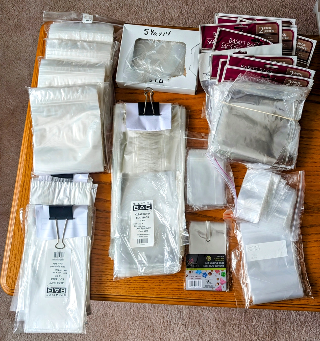 So many clear plastic bags of many different sizes which I used for a business. Hard to see how many in pic.