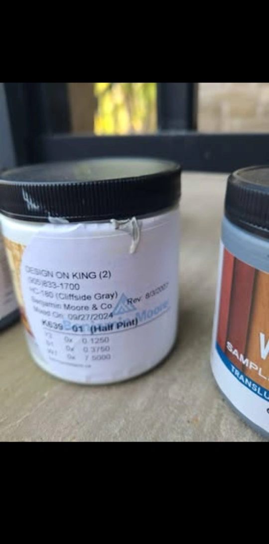 Selling a sample size of Benjamin Moore Woodluxe in Redwood. It's a translucent finish and great for testing out the colour before committing to a larger quantity. I also have a half pint of Benjamin Moore in Cliffside Gray (HC-180) available.
