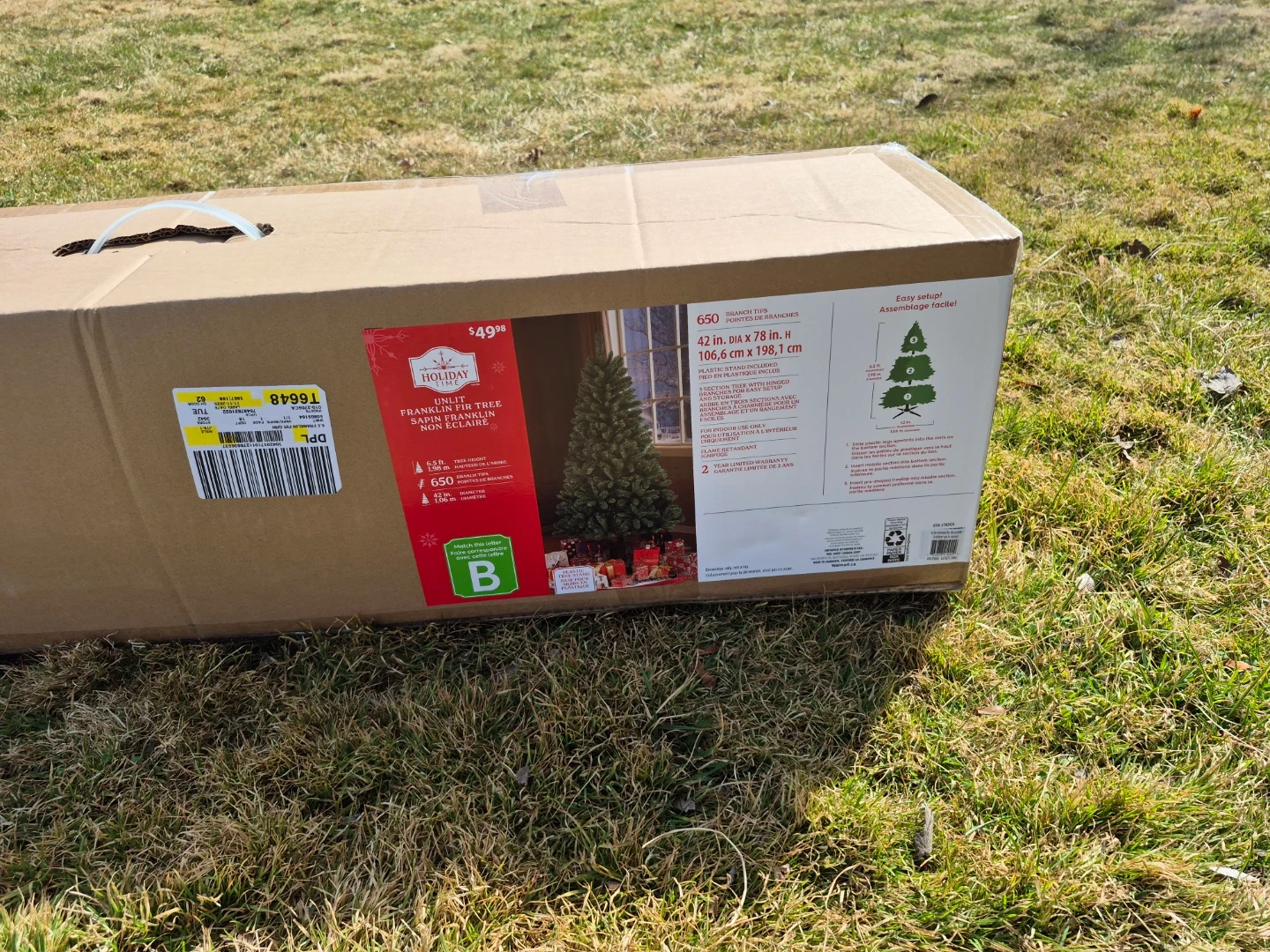 This Holiday Time artificial Christmas tree has 650 branch tips for a full look. It's a 3 section tree with hinged branches for easy setup and storage. The tree is designed for indoor use only. 7ft