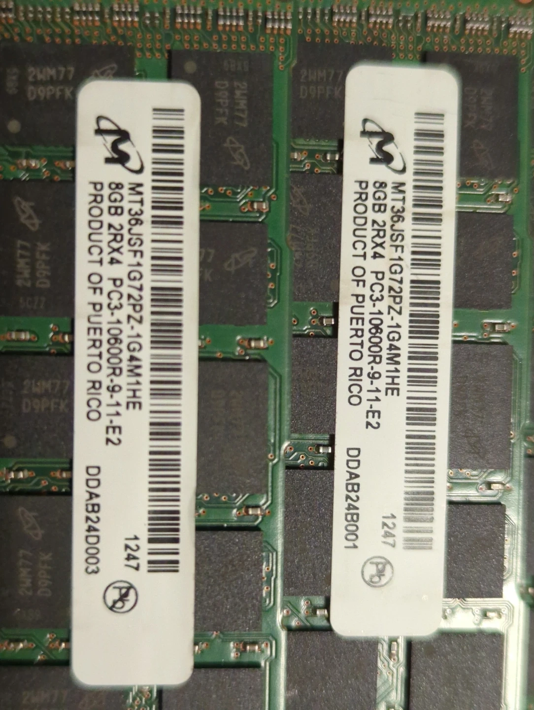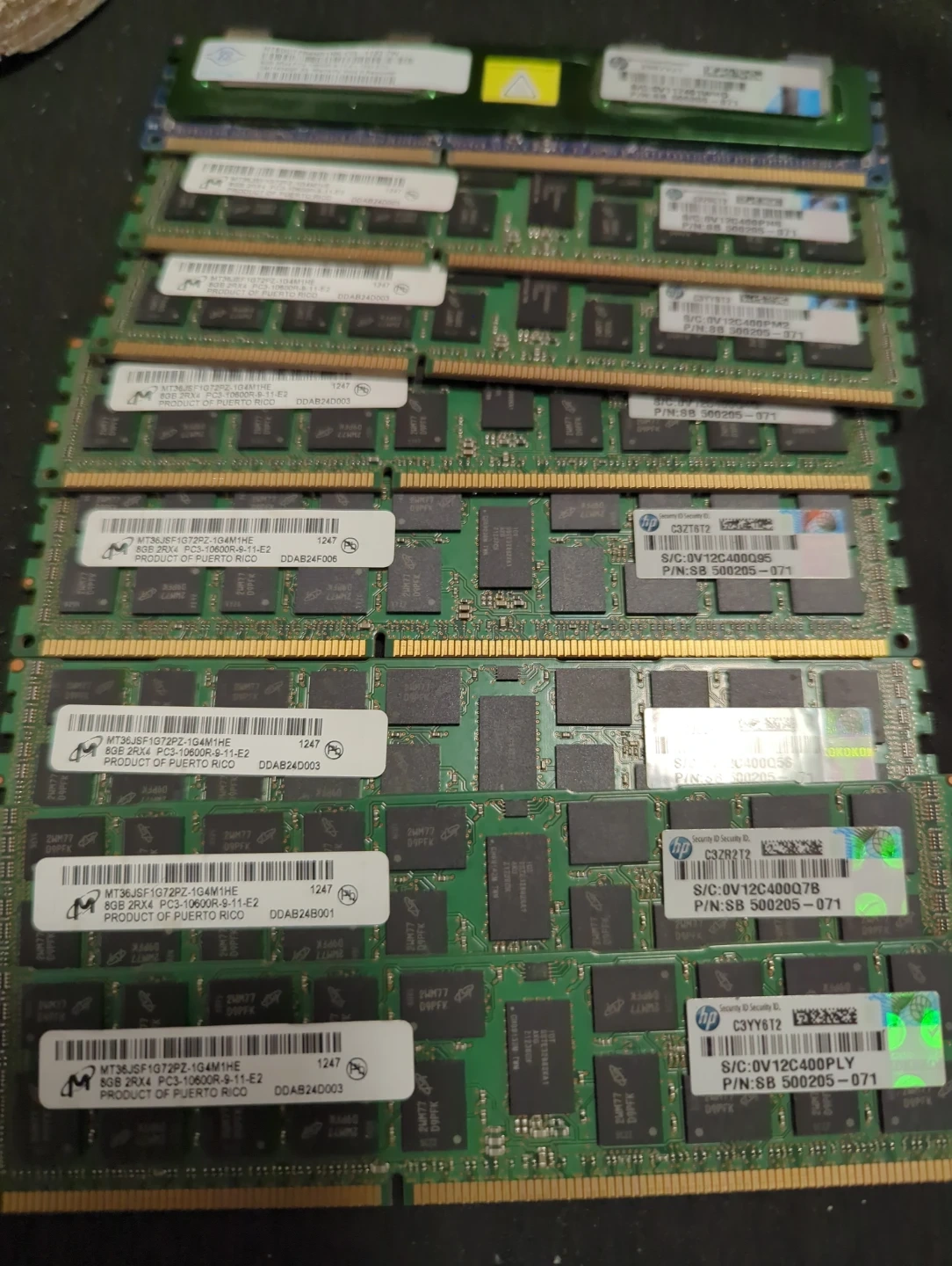 Lot of five HP 8GB DDR3 ECC Registered RAM modules. Each module is PC3-10600R and rated at 1333MHz. These are server-grade memory sticks. Great for upgrading compatible workstations or servers!