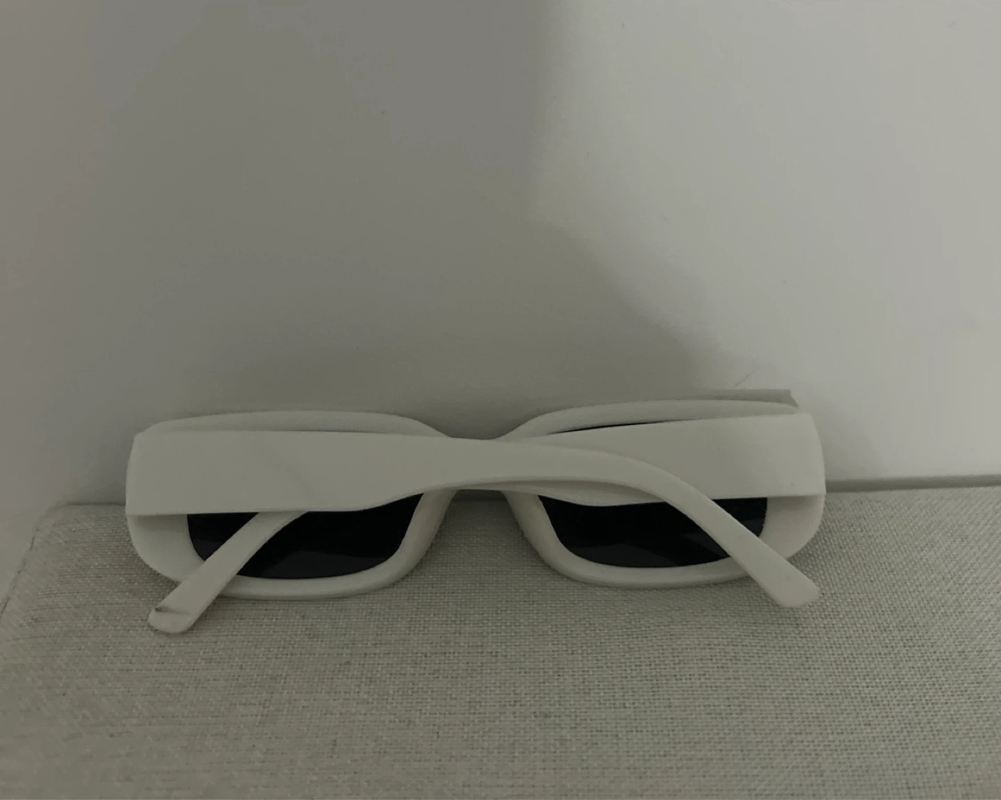 These white rectangular sunglasses feature black lenses. They're a stylish accessory for sunny days. A classic shape that's easy to wear!