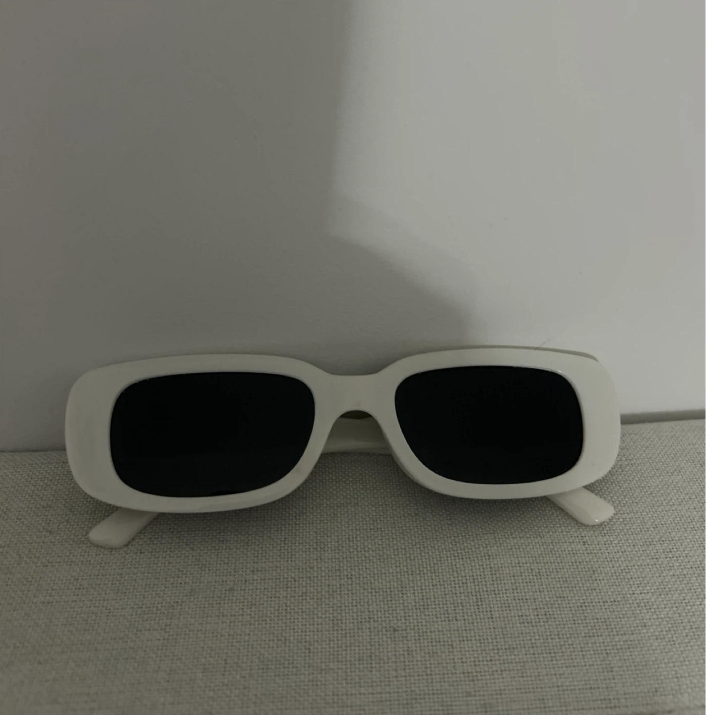 These white rectangular sunglasses feature black lenses. They're a stylish accessory for sunny days. A classic shape that's easy to wear!
