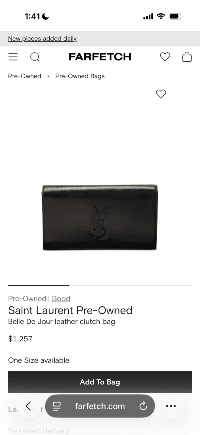 This is a Saint Laurent Belle De Jour leather clutch bag. It's black with a patent finish. This clutch is one size and made of leather. It is AUTHENTIC so please don’t ask . It’s in a new condition (worn twice for a wedding). Willing to sell at half the price what farfetch asks for.