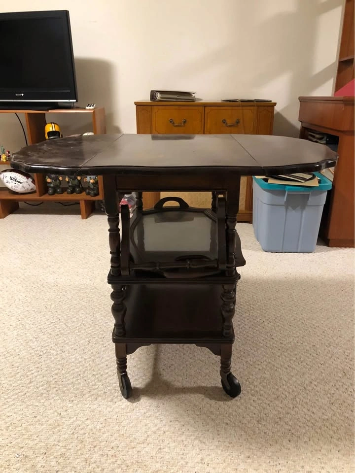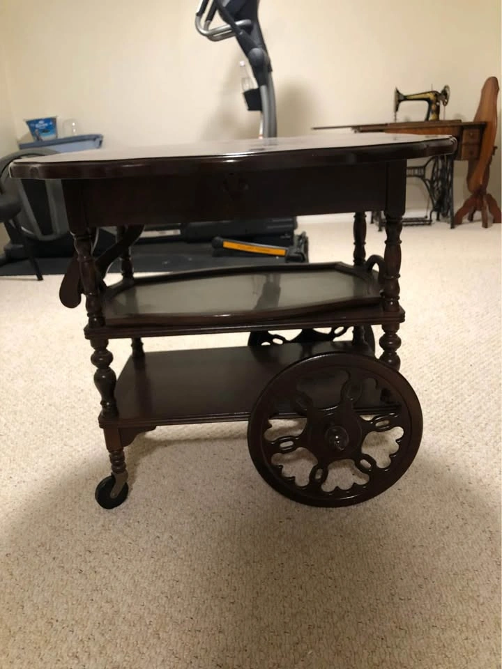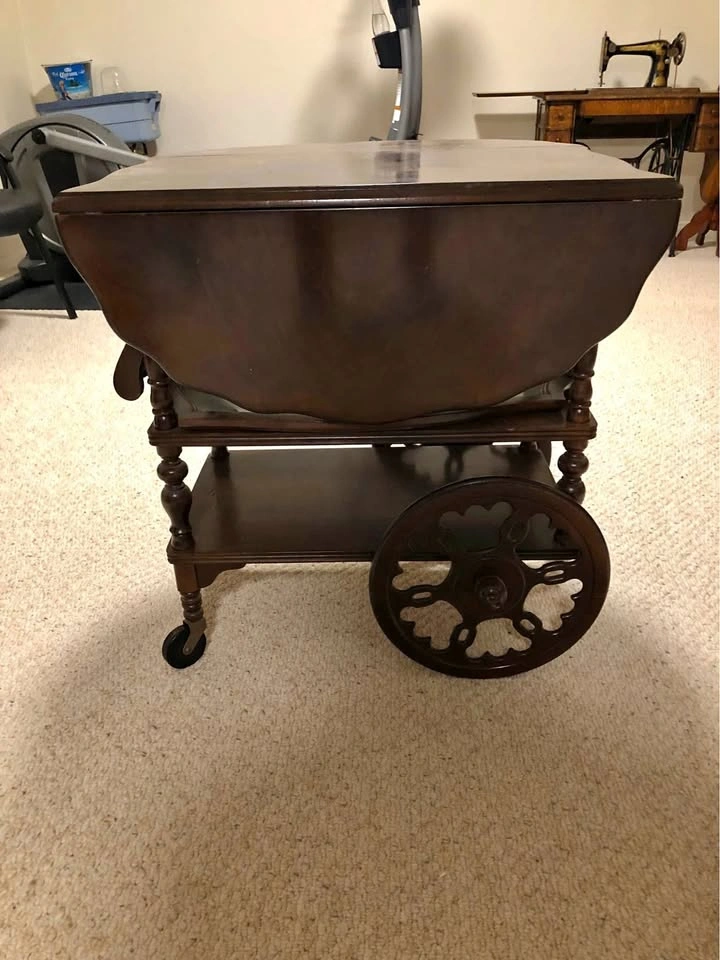 Buy & SellAntique Tea TrolleyAntique Tea Trolley$200Tea Trolley with extending leaves and a glass serving tray, and a hidden drawer. 27” deep 38” wide 28 1/2” tall, was acquired in 1952WHERE TO MEETCheck LocationView MapSELLERverifiedRobBeaumaris721 review0 chats·1 favorites·34 viewsSEND CHAT TO SELLERHi Rob! I’m interested in your listing.Hi Rob! I’m interested in your listing.Get the Karrot app to chatSign In to chat