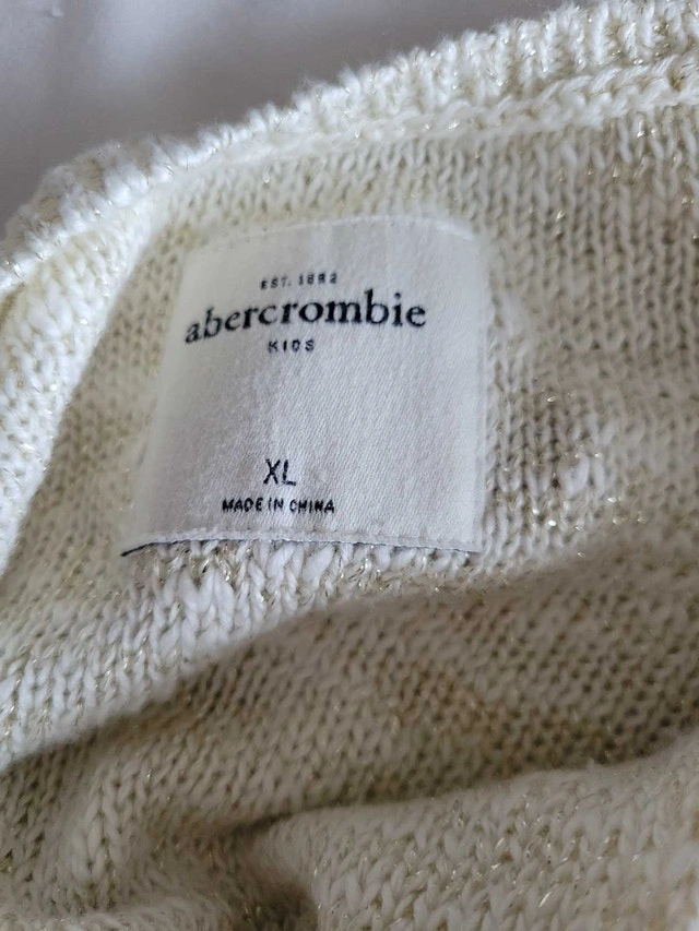 This is an Abercrombie Kids sweater in XL. It's in good condition and ready to wear! I'm clearing out space in my closet, and this sweater deserves a new home. It features a V-neck and long sleeves, perfect for layering or wearing on its own during those breezy days. If the ad is still up, it's still available!