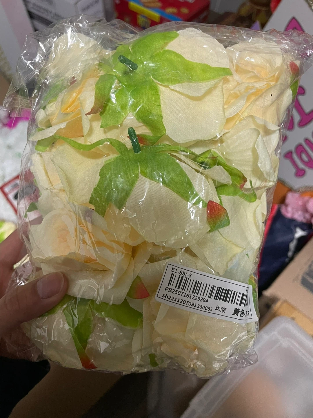 Bag of artificial flower petals. Available in yellow, pink, white, and red. Great for crafts or decorations!