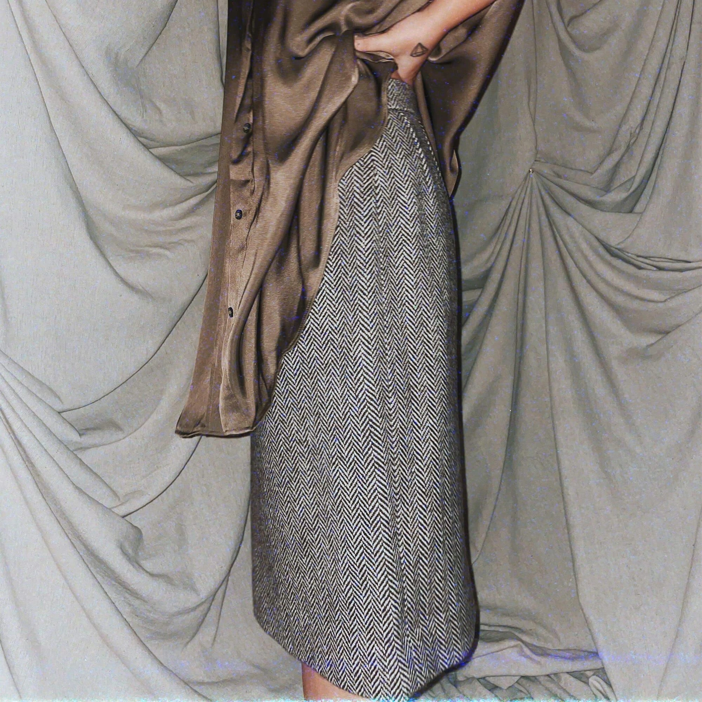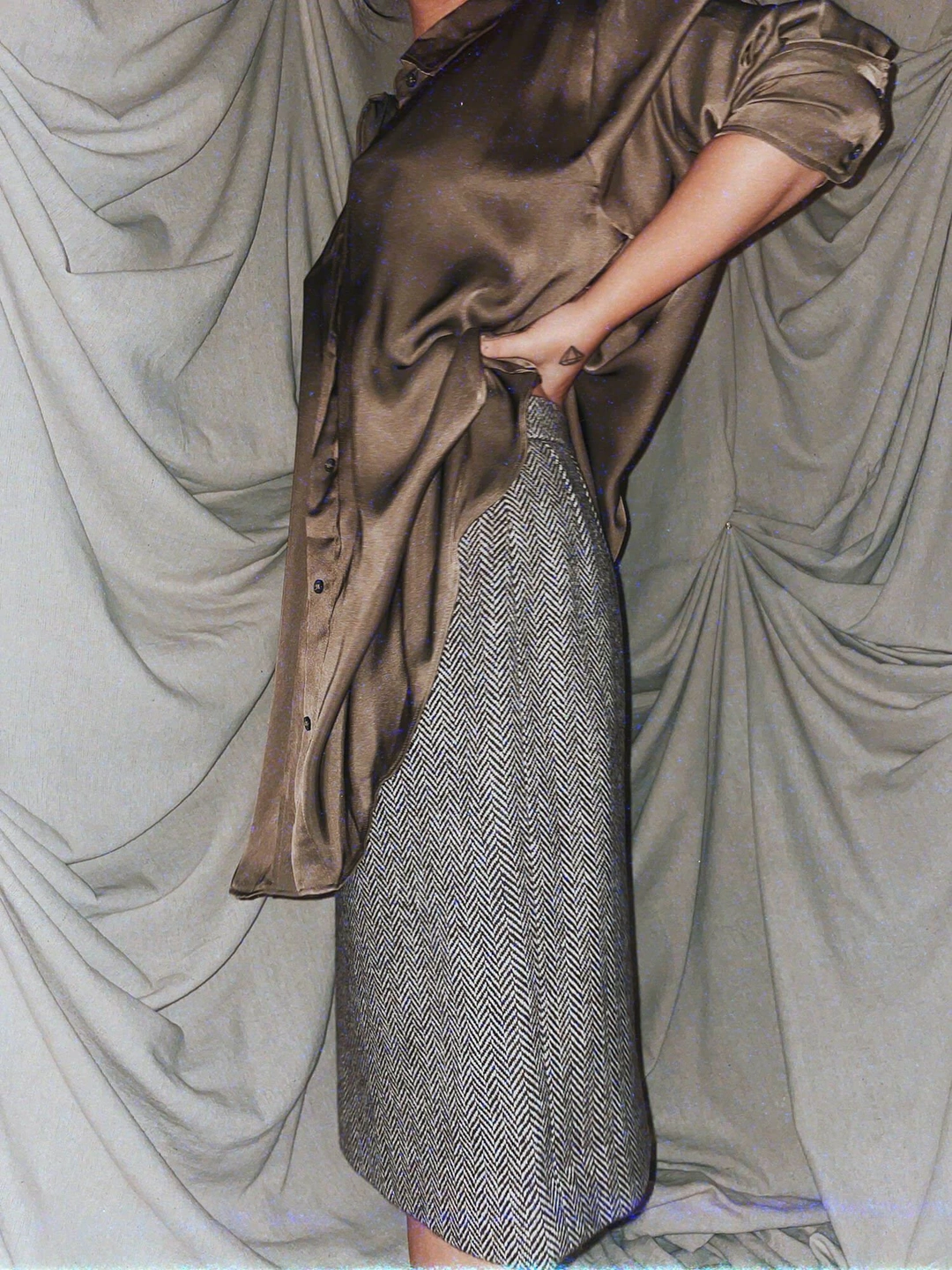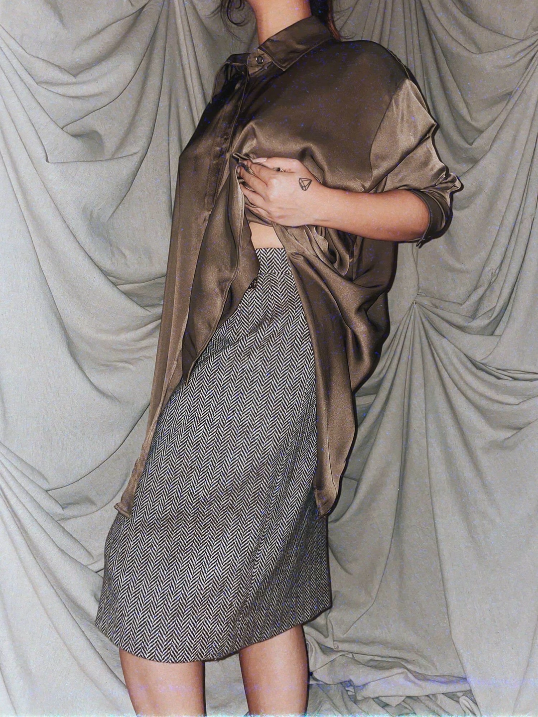 vintage chevron brown wool midi skirt