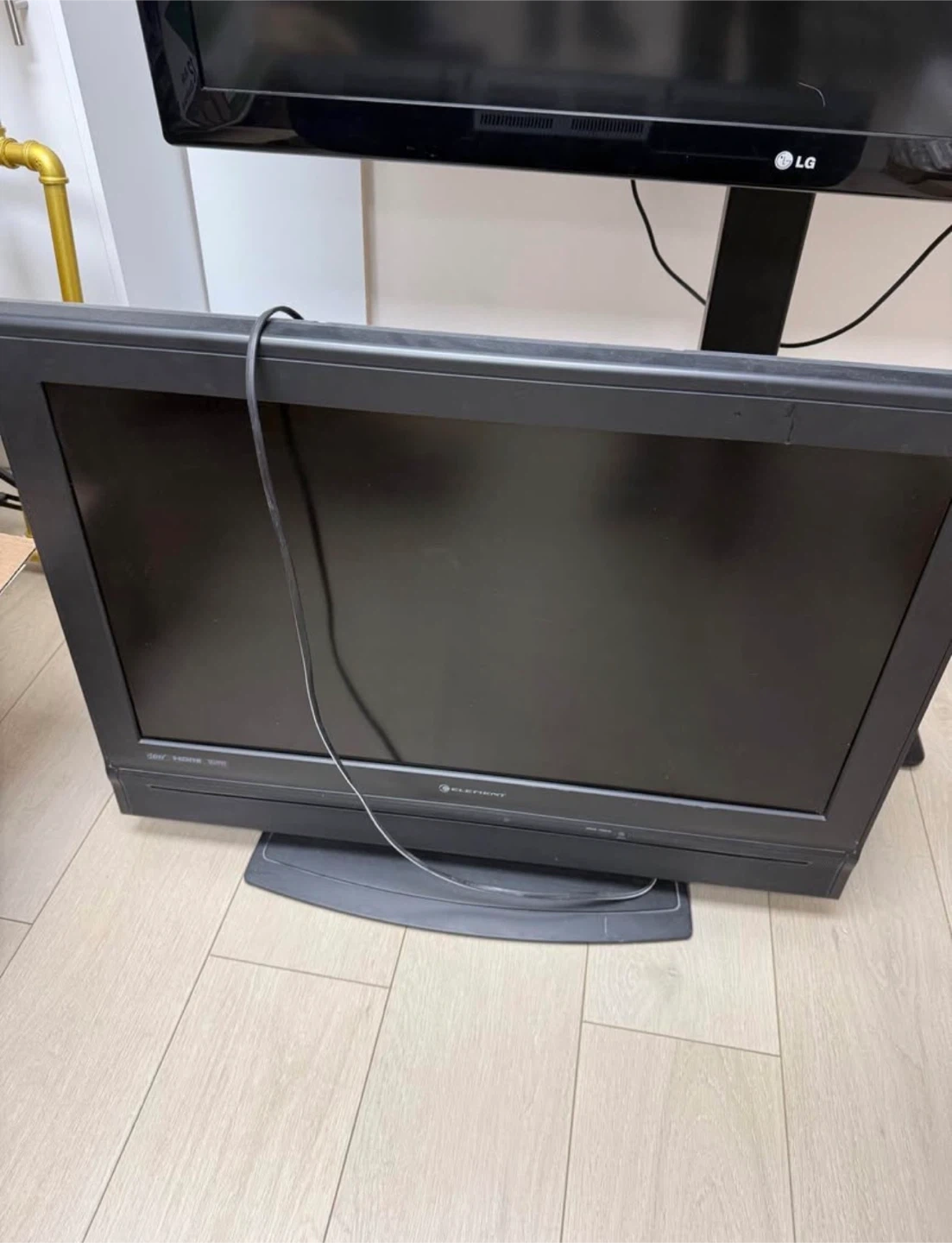 LCD Element 32 inch television. It's black with a stand included. Works well for a bedroom or small office, no remote.