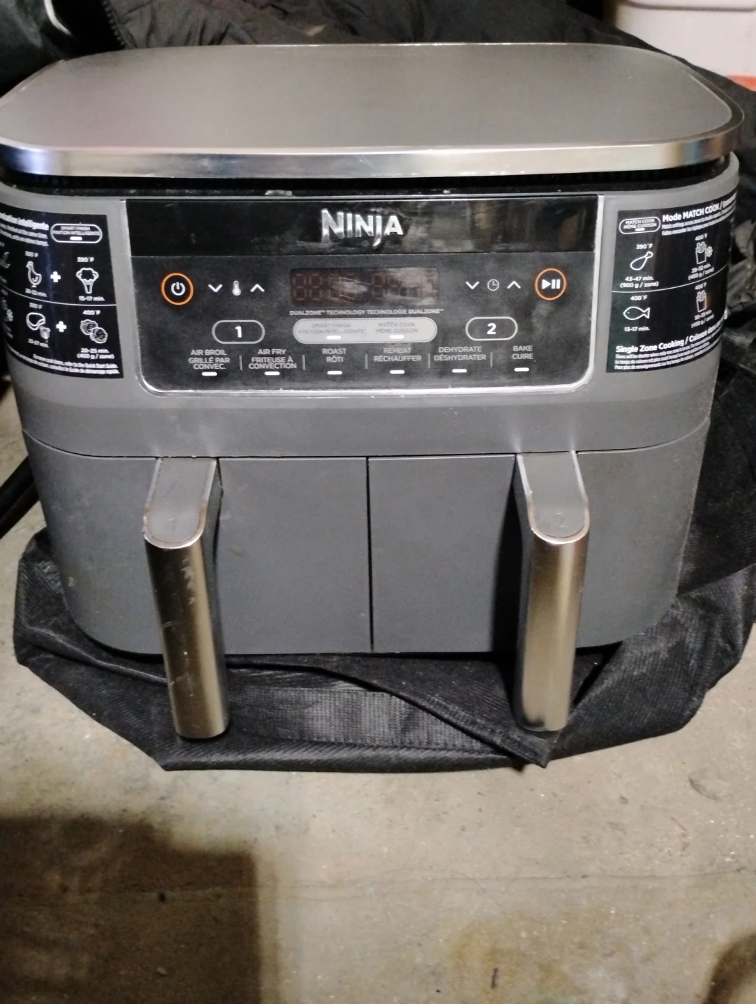 This Ninja Foodi dual air fryer offers two baskets for cooking multiple foods at once. It includes modes for air frying, roasting, broiling, reheating, and dehydrating. Perfect for busy households needing to prepare different dishes simultaneously!