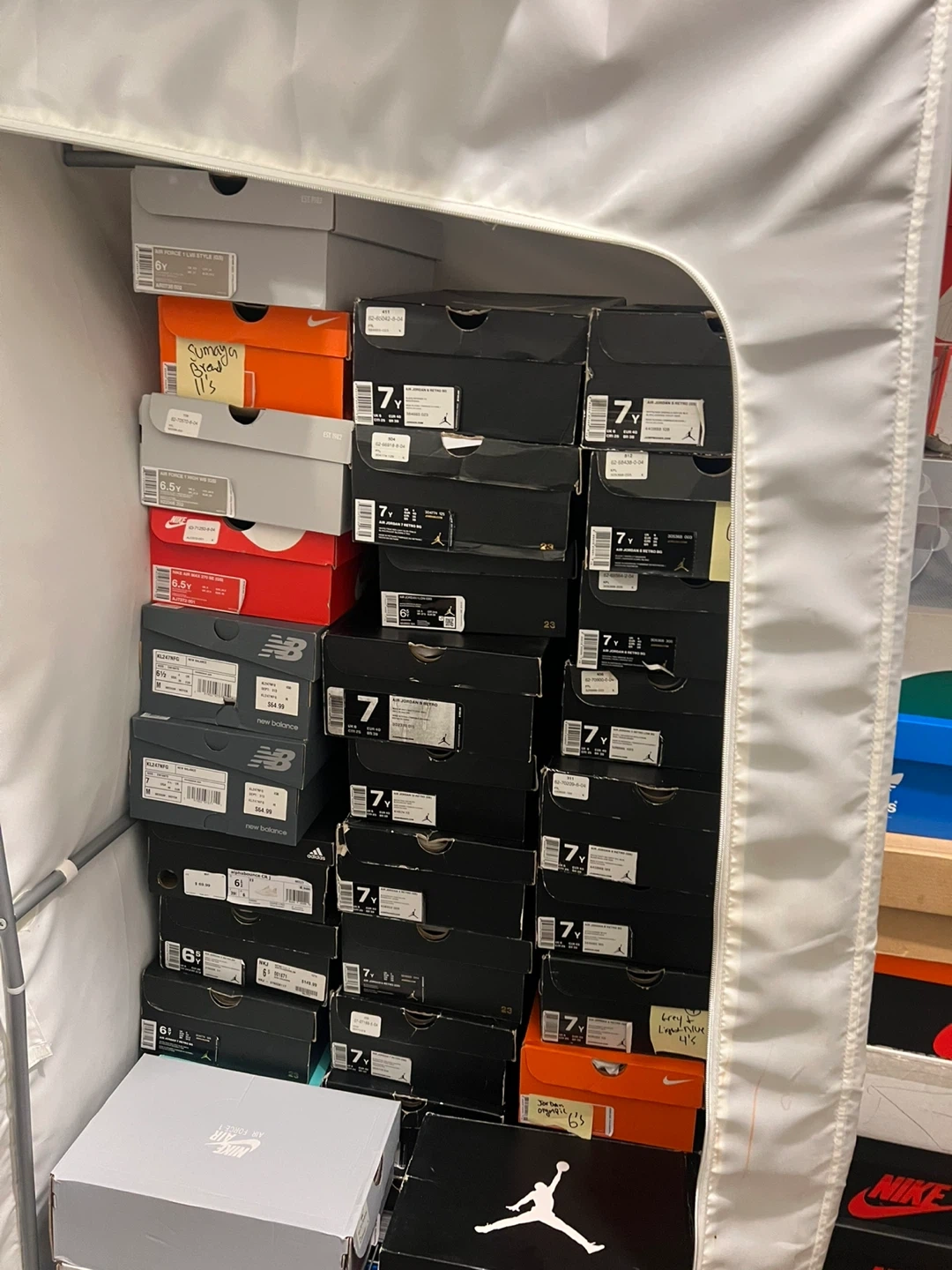 Various Nike and Jordan brand sneakers are available, many in original boxes. Mainly sizes 6.5Y and 7Y. Personal collection, looking to sell all at once or bulk. Price ranges from $20 and up. Brand new Jordans available too!!
