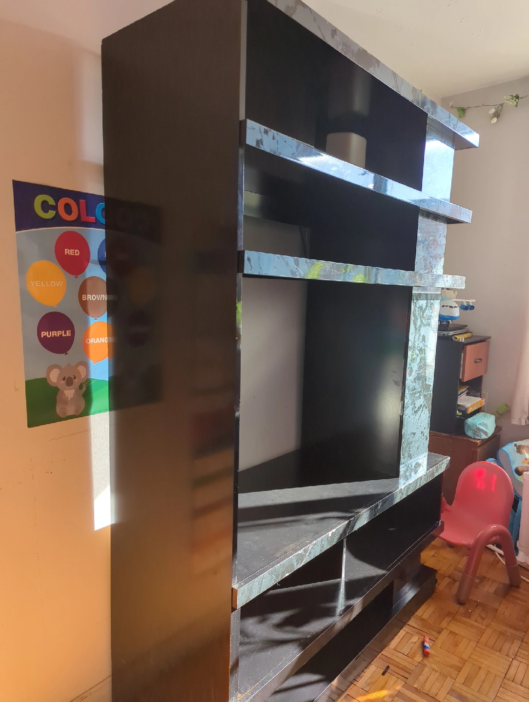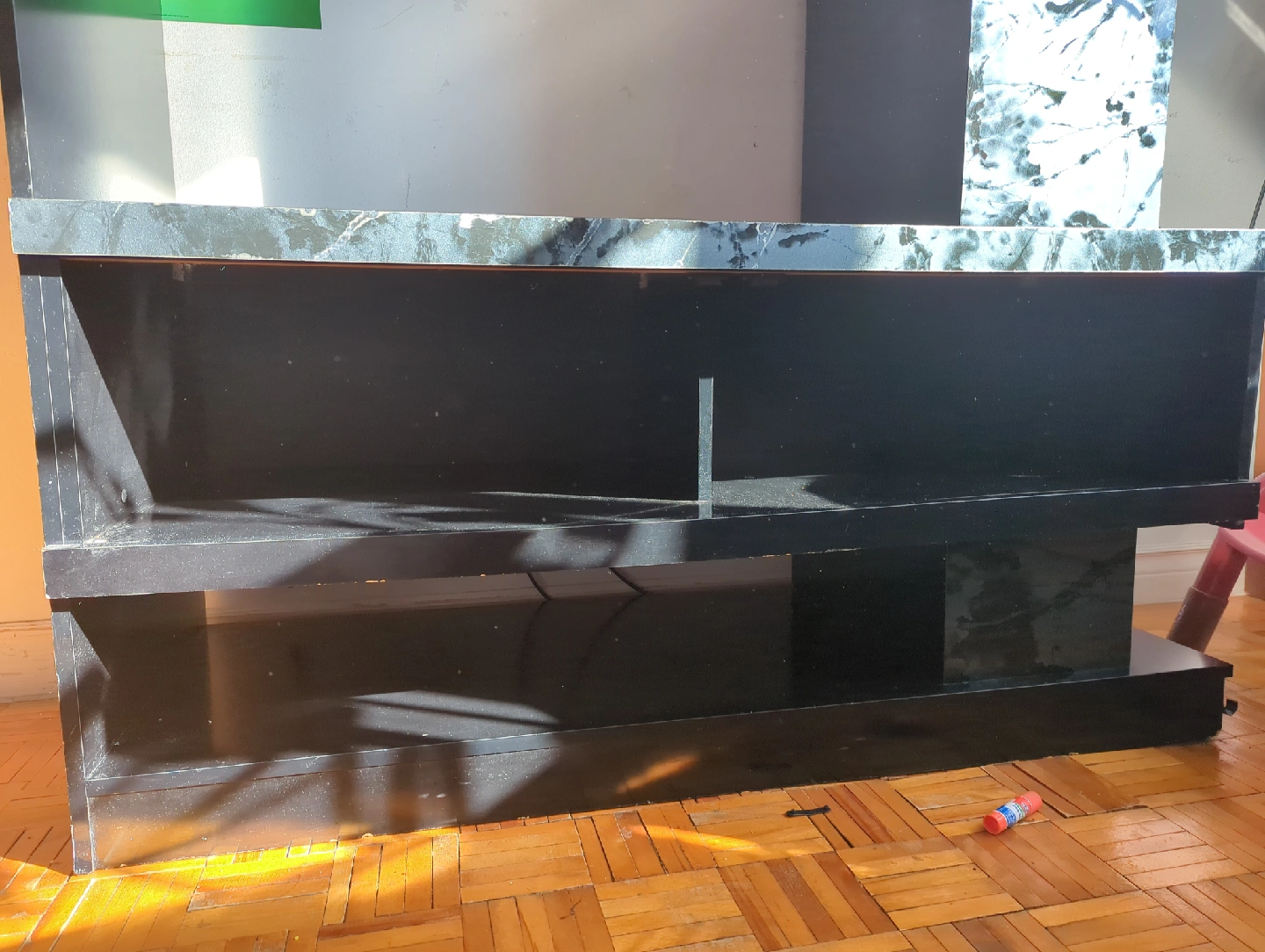 A stylish black marble TV stand with shelving! It's in great condition and ready to add a touch of elegance to your living room