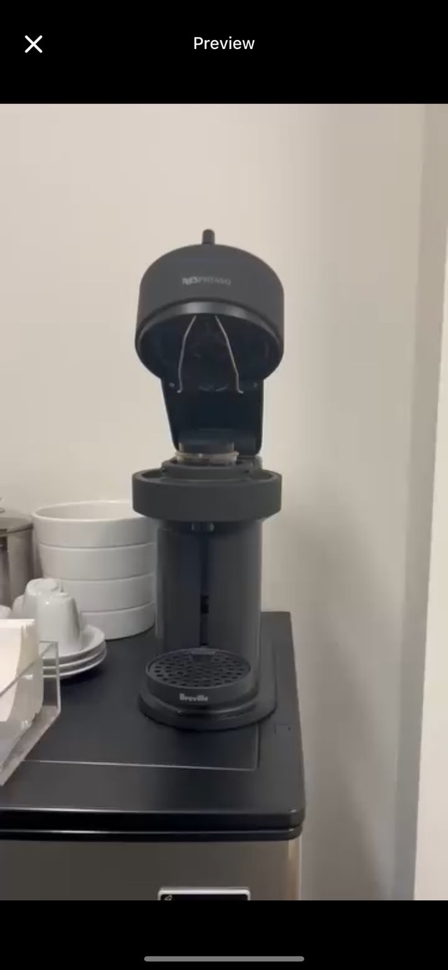 Selling a Nespresso Vertuo Next (De’Longhi / Breville version) in working condition. Fully functional: heats, brews, uses pods correctly. Comes with power cord, water tank, and drip tray. Some light cosmetic wear (minor scratches) but nothing major. Cleaned, descaled, and ready to use. Ideal for anyone wanting a quick cup, or an espresso/coffee combo. Pickup only in Mississauga / Toronto.