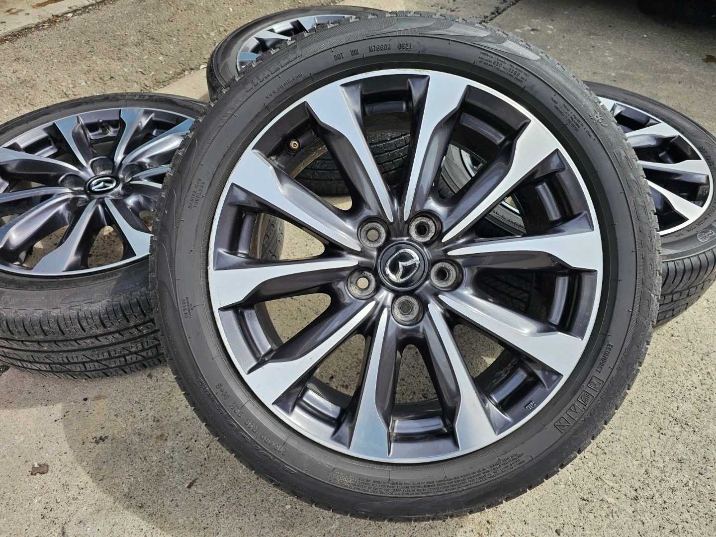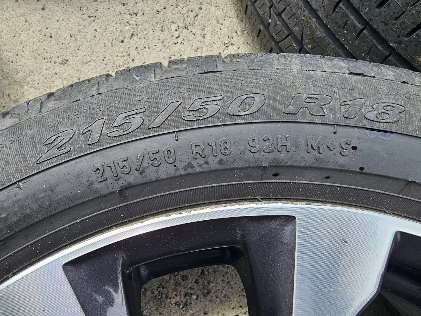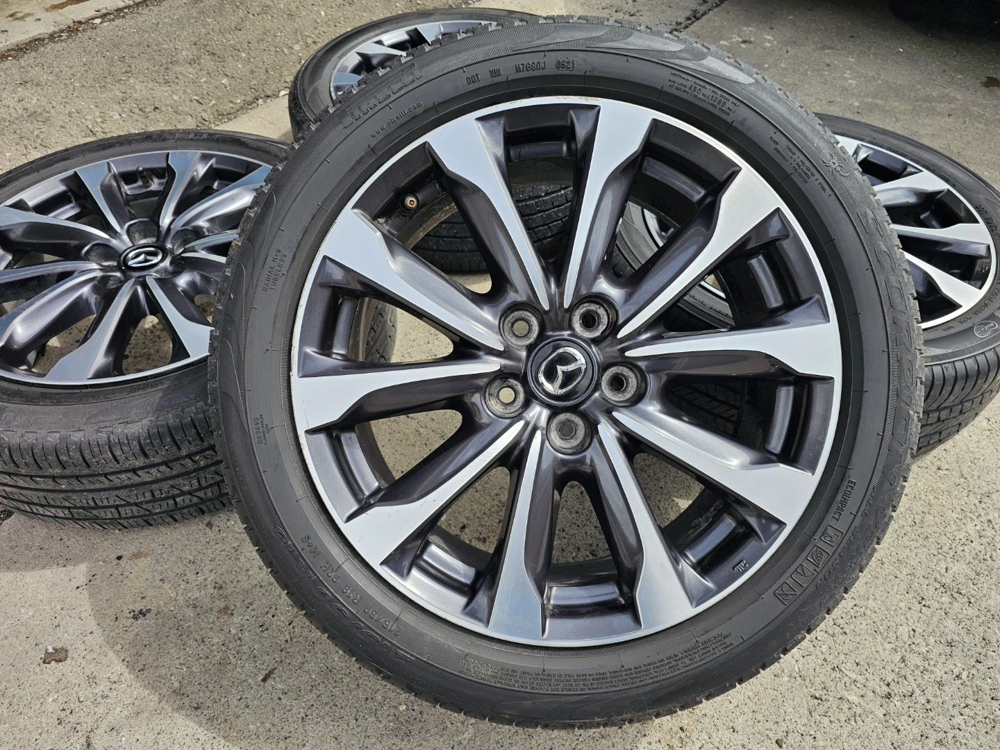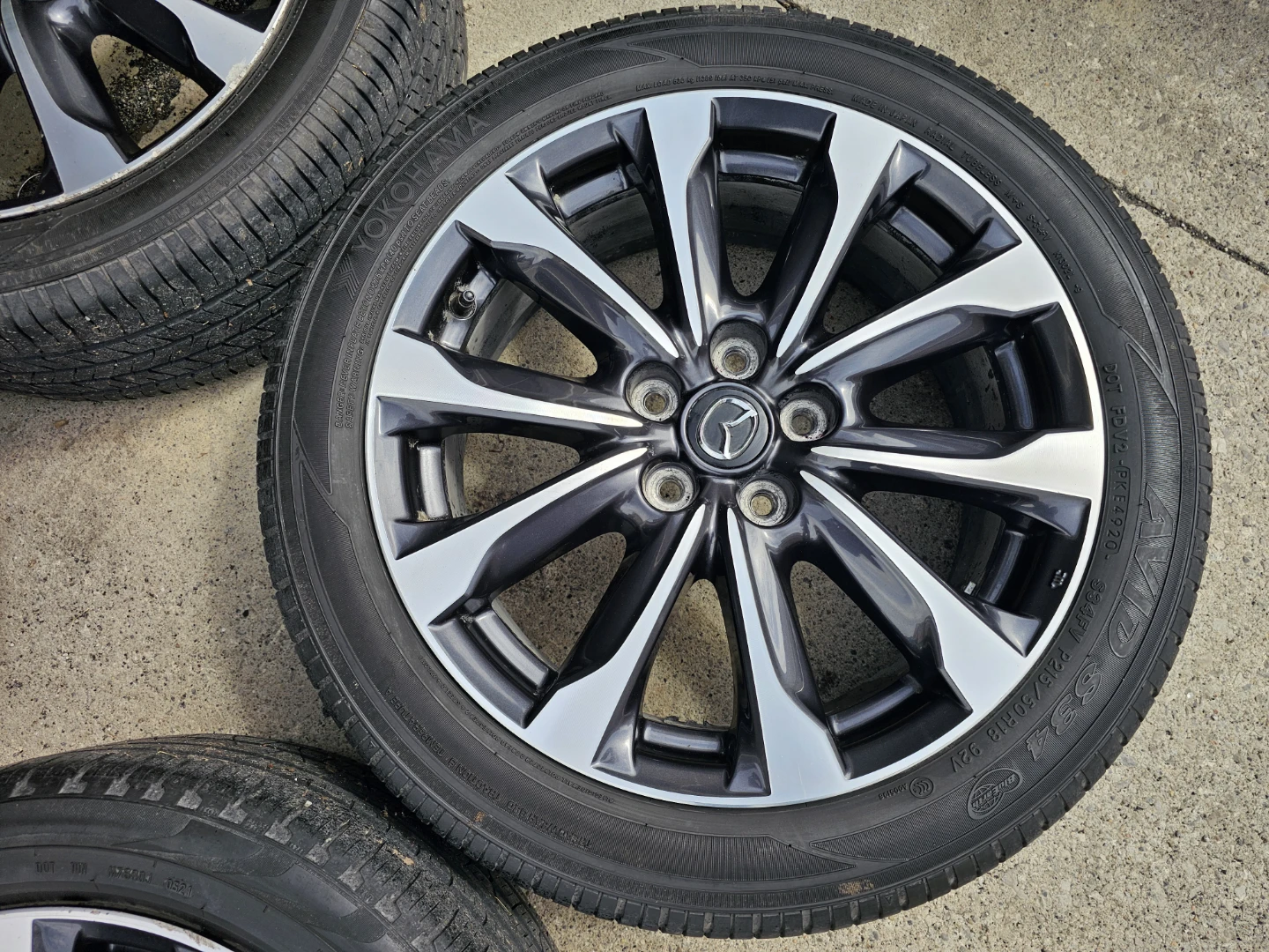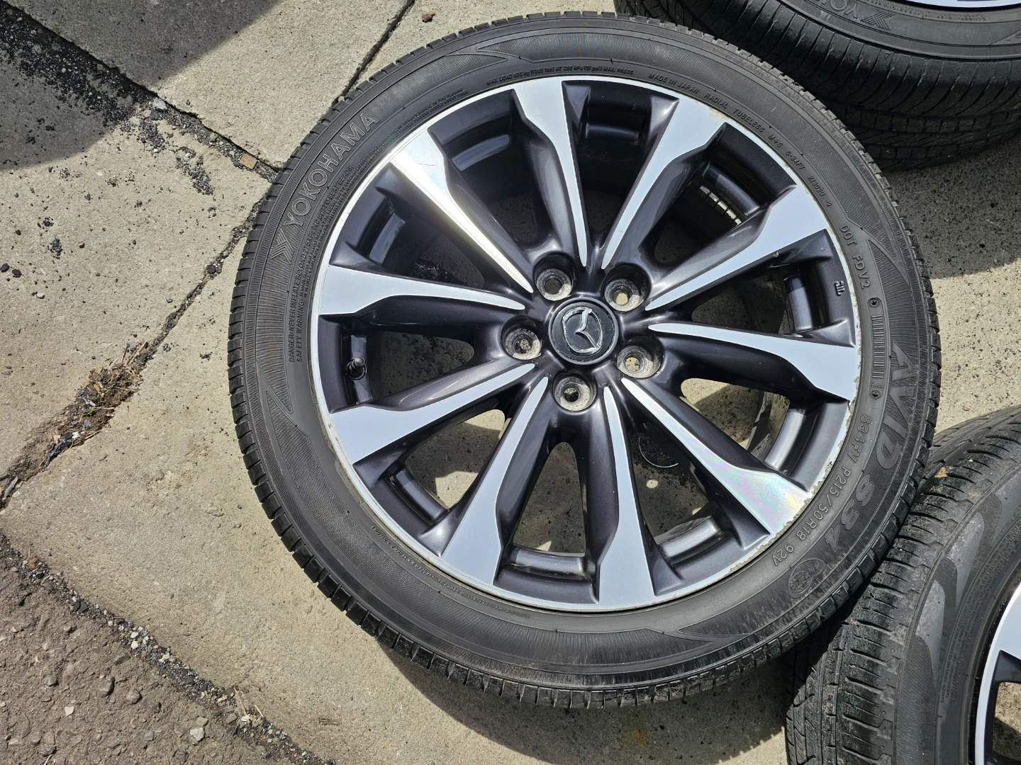 Set of 4 original 18" mazda cx-3 rims and all season tires 215/50 R18. Rims and tires are in good shape, no bend, no cracks, minor curb rash. 2 tires are Pirelli brand, 2 others are Yokohama with 1 to 2 season left on them