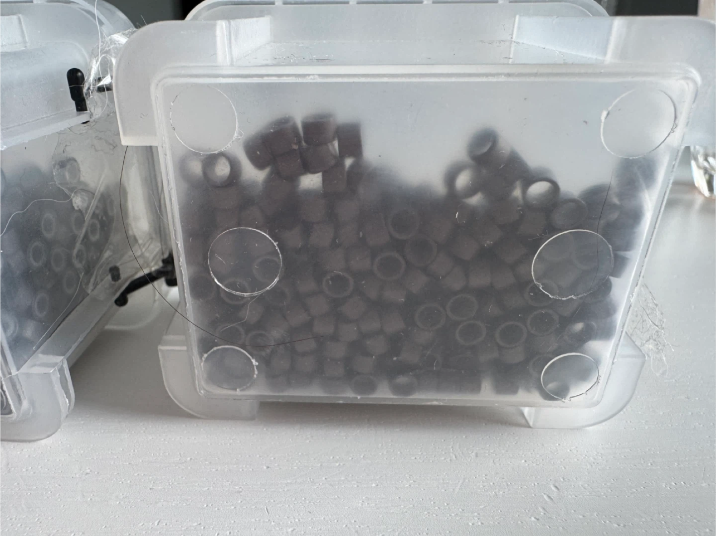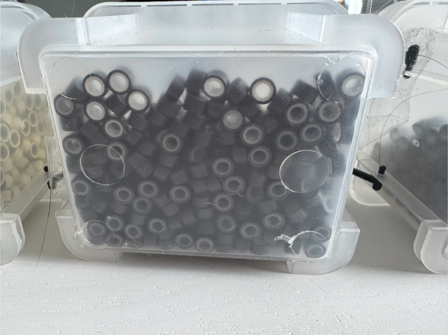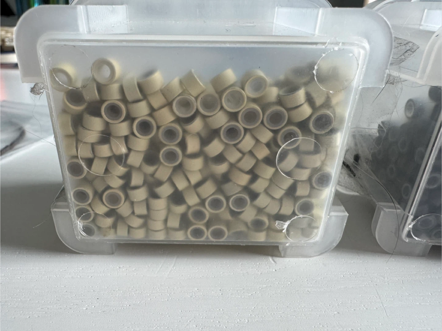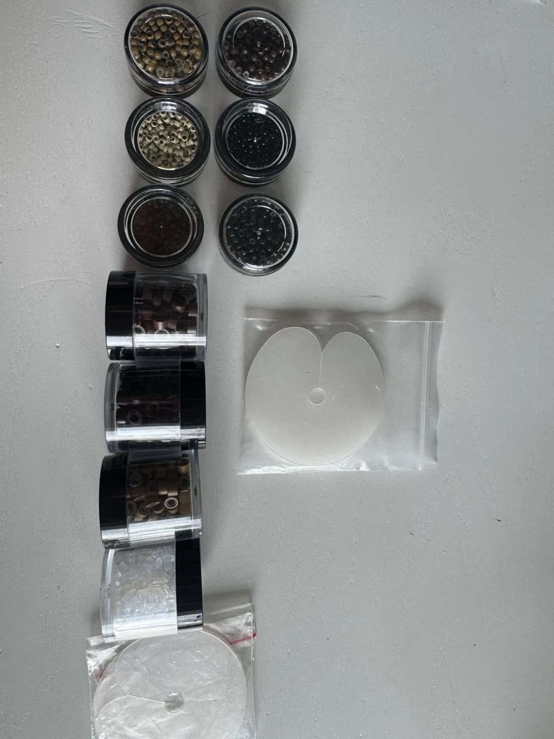 • Multiple containers of micro rings / beads in different colors (black, brown, blonde)