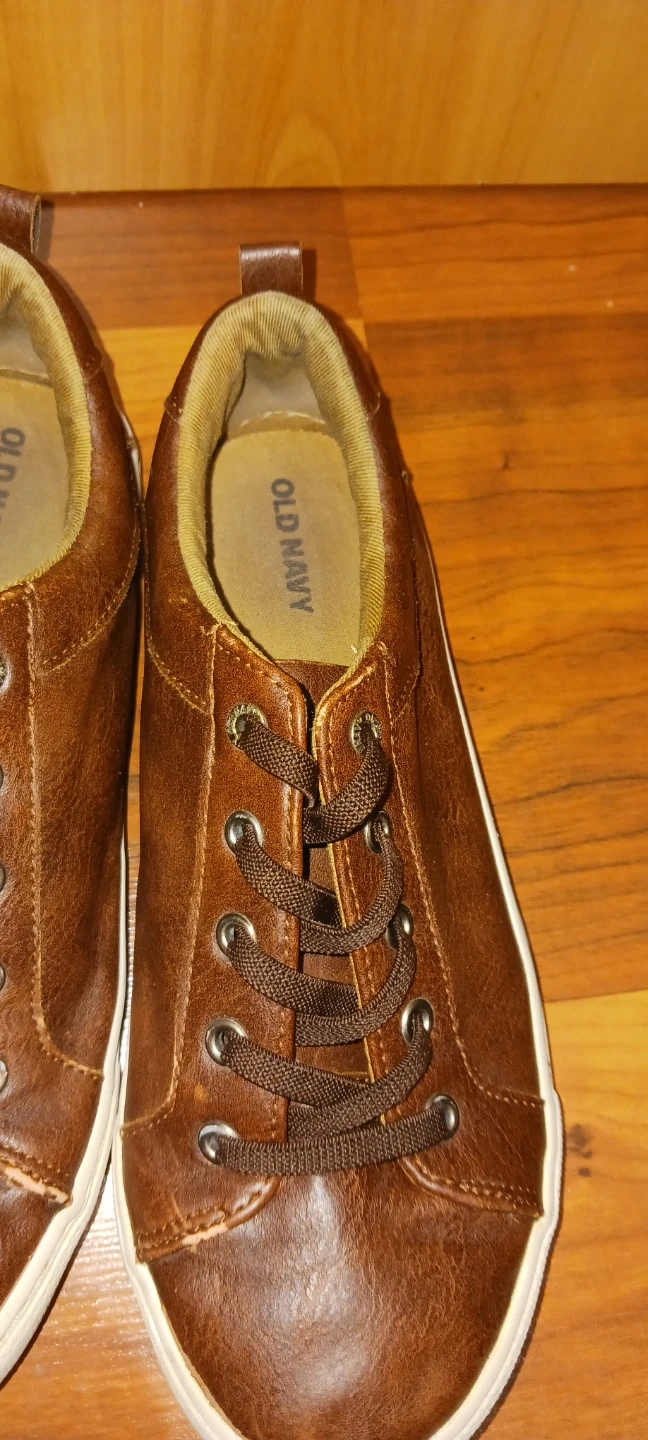These Old Navy shoes feature a stylish brown faux leather exterior and lace-up closure. They have a comfortable, classic design. Great for everyday wear!