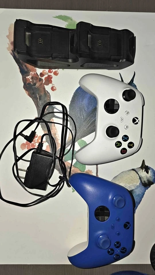 These controllers are like new, with joysticks in great condition. The dock includes batteries to extend playtime and comes with its charger. They can connect to an Xbox or a computer.