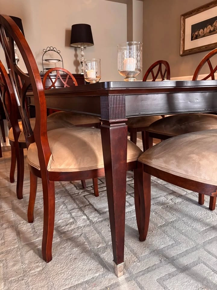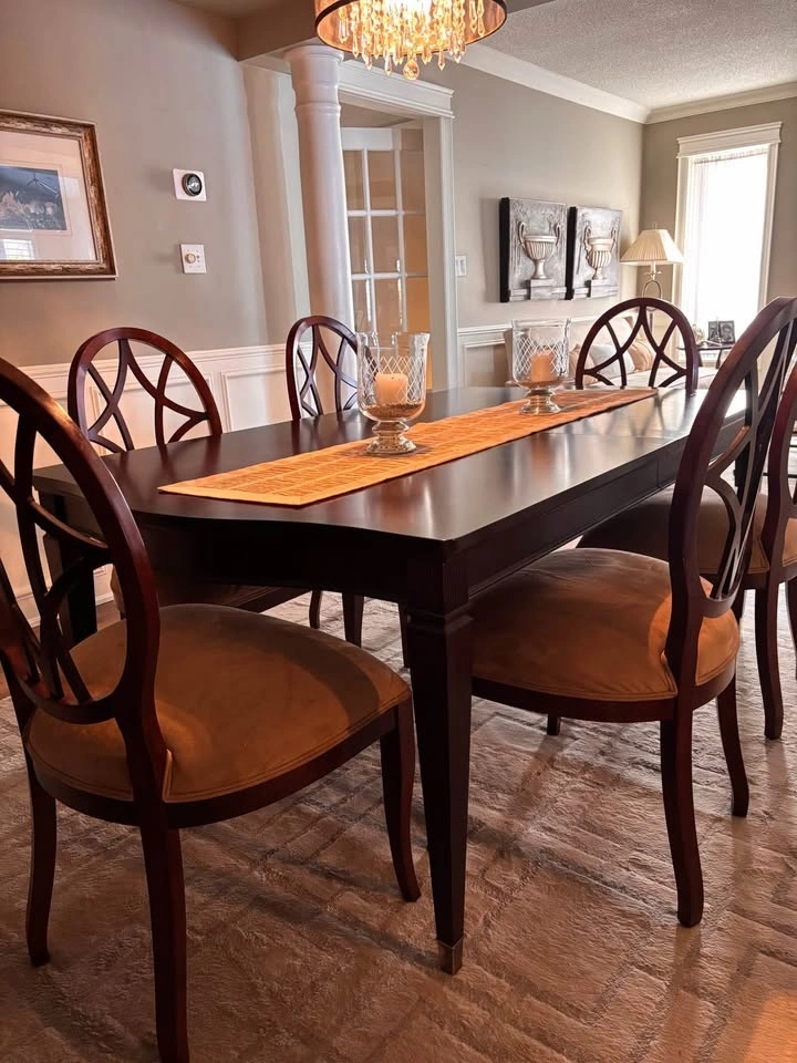 Solid wood dining table. dark wood finish.