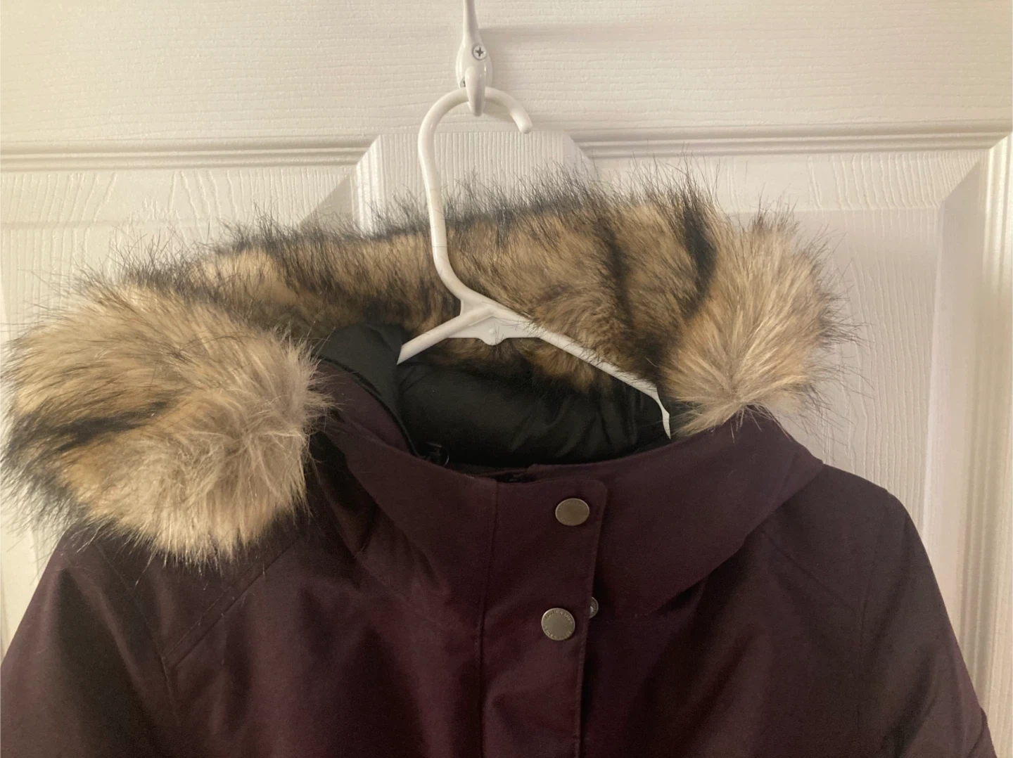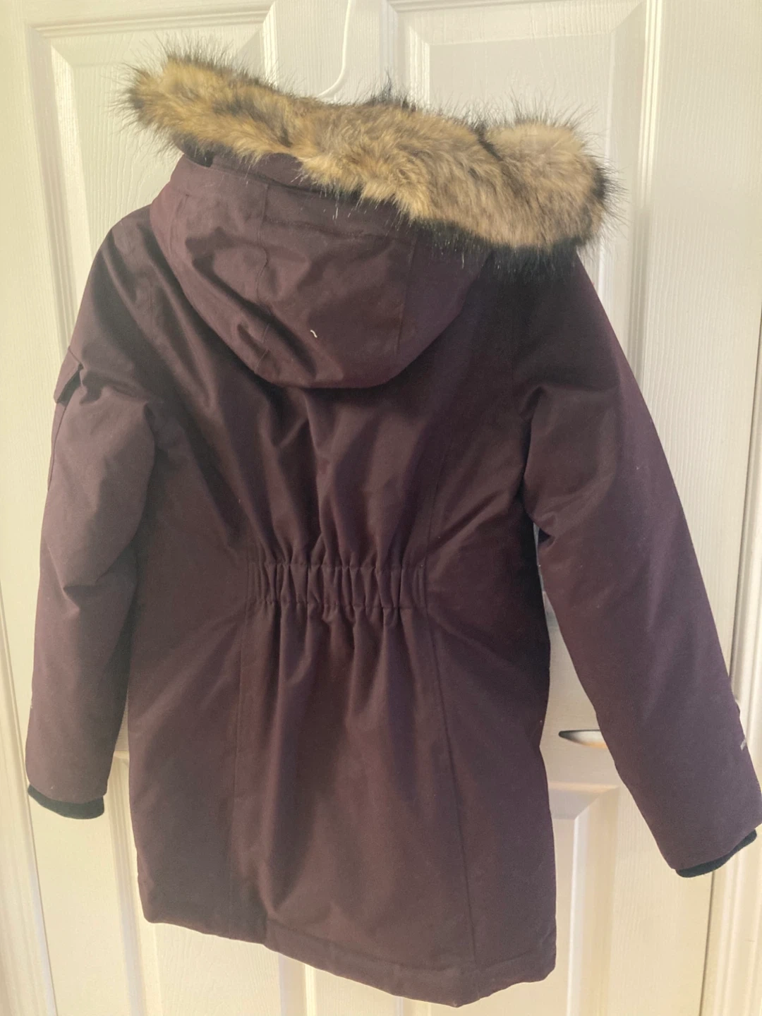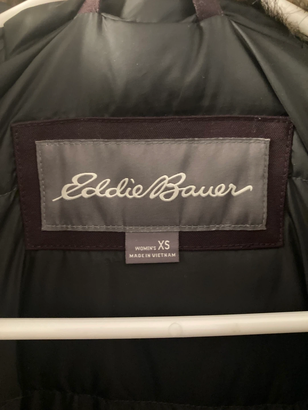 Eddie Bauer winter parka in women's size XS. It fits size S though. It features a faux fur-trimmed hood and a flattering fit.