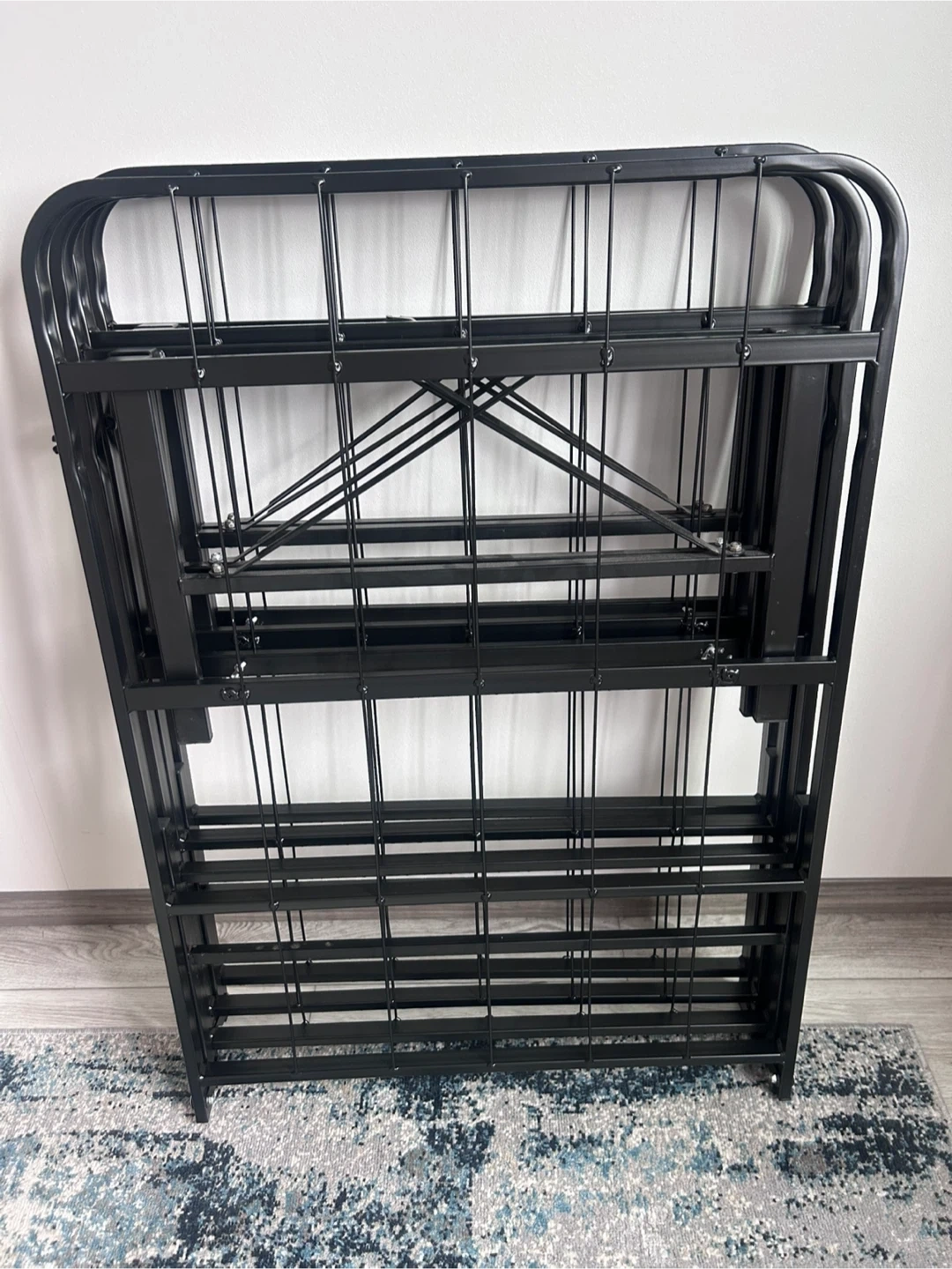 Double mattress and bed frame. This is a metal folding bed frame. It's black and provides sturdy support for your mattress. It folds up for easy storage! The mattress has been slept on once in the last 5 months since I had it .