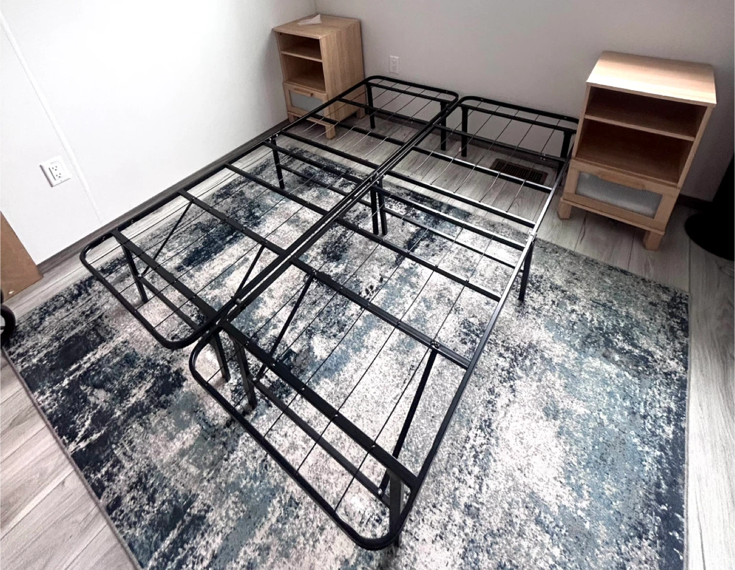 Double mattress and bed frame. This is a metal folding bed frame. It's black and provides sturdy support for your mattress. It folds up for easy storage! The mattress has been slept on once in the last 5 months since I had it .