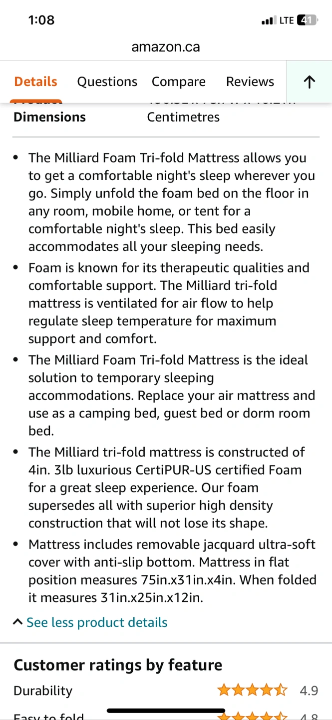 -Mattress can be folded to make into a seating area, folds easily for tight spaces and storage.