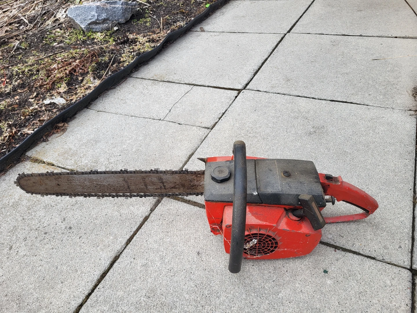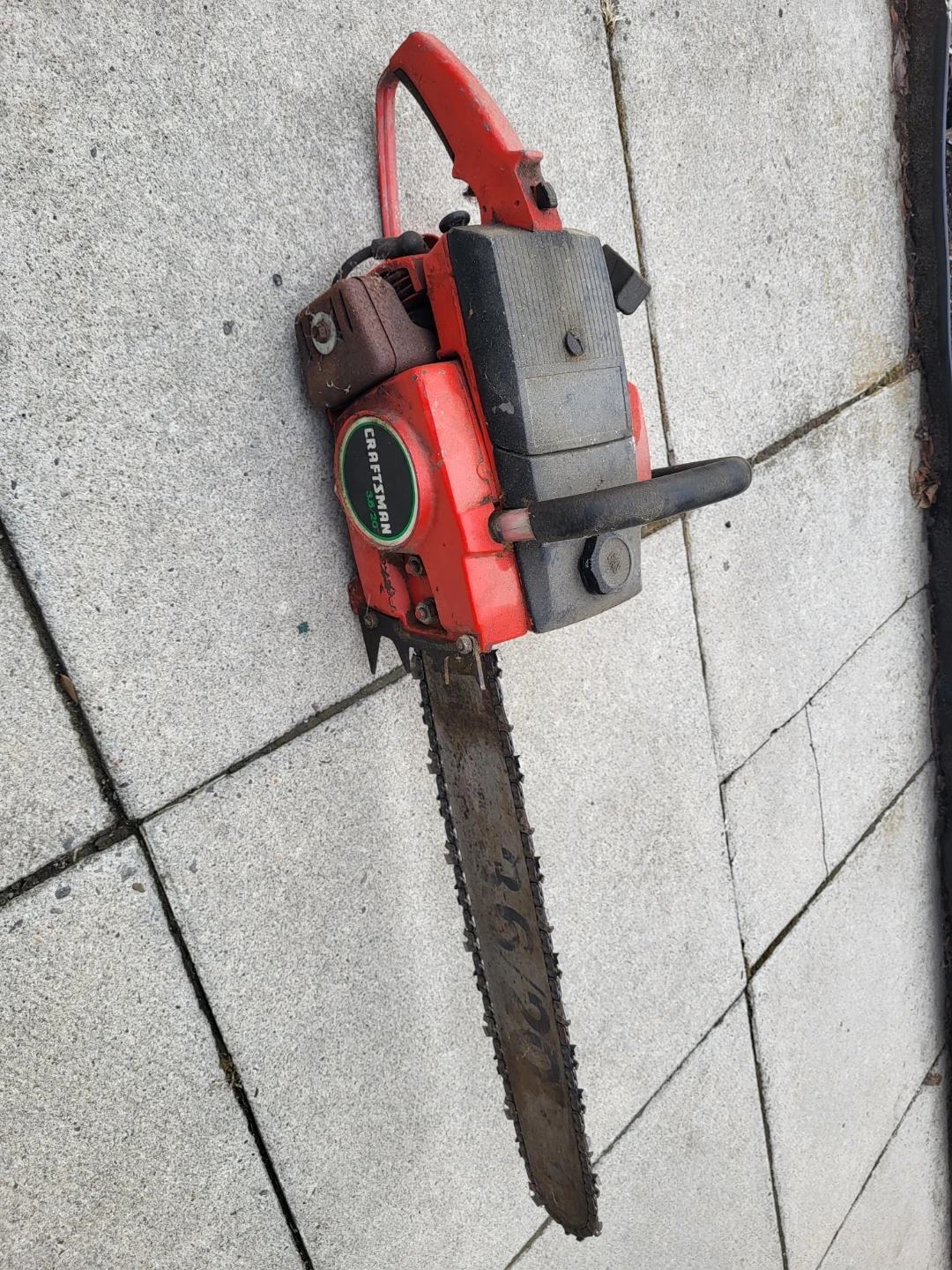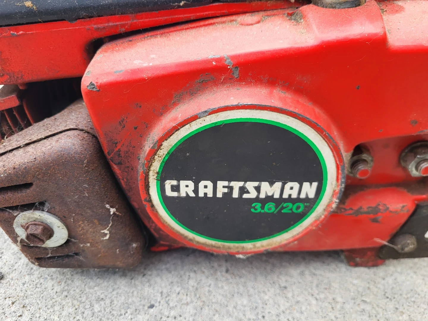 Red Craftsman chainsaw with a 20-inch bar. Model 3.6/20. Need to go to someone who knows saws as it pre dates chain breaks.