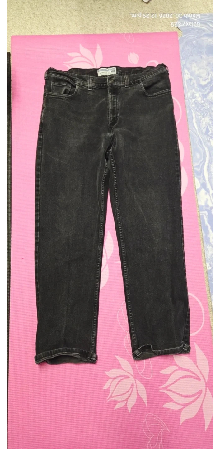 Classic black denim jeans with a regular fit. These jeans are made from durable denim material. A versatile pair for everyday wear!