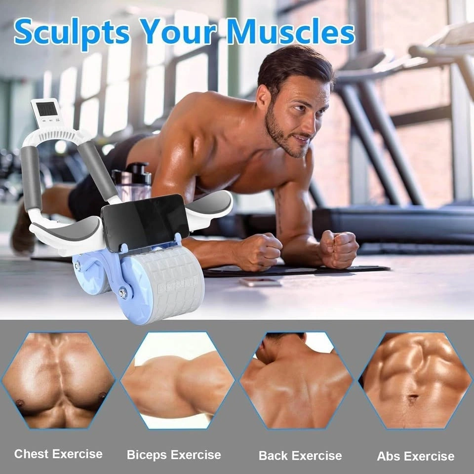 Automatic rebound ab roller with intelligent auxiliary brake and built-in system for smoother rebound. Features a double-wheel design with wider front and back wheels for smooth rolling and better control, helping to work core muscles safely, especially for beginners. Made of stable, eco-friendly plastic with comfortable, non-slip sponge grips. It's durable, won't make noise or scratch the floor.