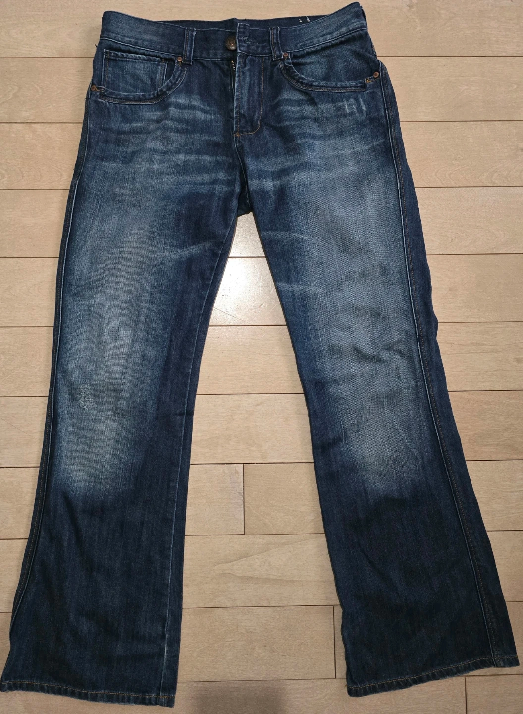 Selling a pair of authentic Guess Jeans in excellent condition. These feature a classic dark wash with stylish fading and a unique embroidered logo on the inner waistband. Made with 100% cotton for a sturdy, high-quality feel.