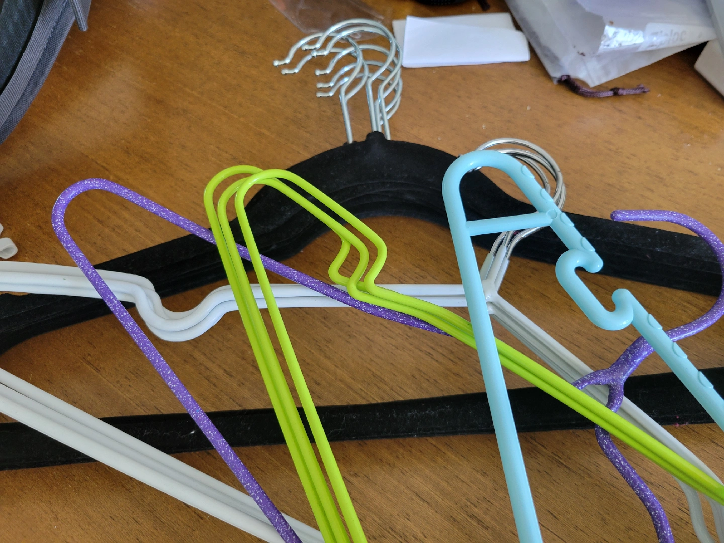 Selling a collection of assorted clothes hangers! There's a variety of colours and styles, including black velvet, white, purple glitter, green, and light blue plastic hangers. Perfect for organizing your closet or adding some colour to your wardrobe.
