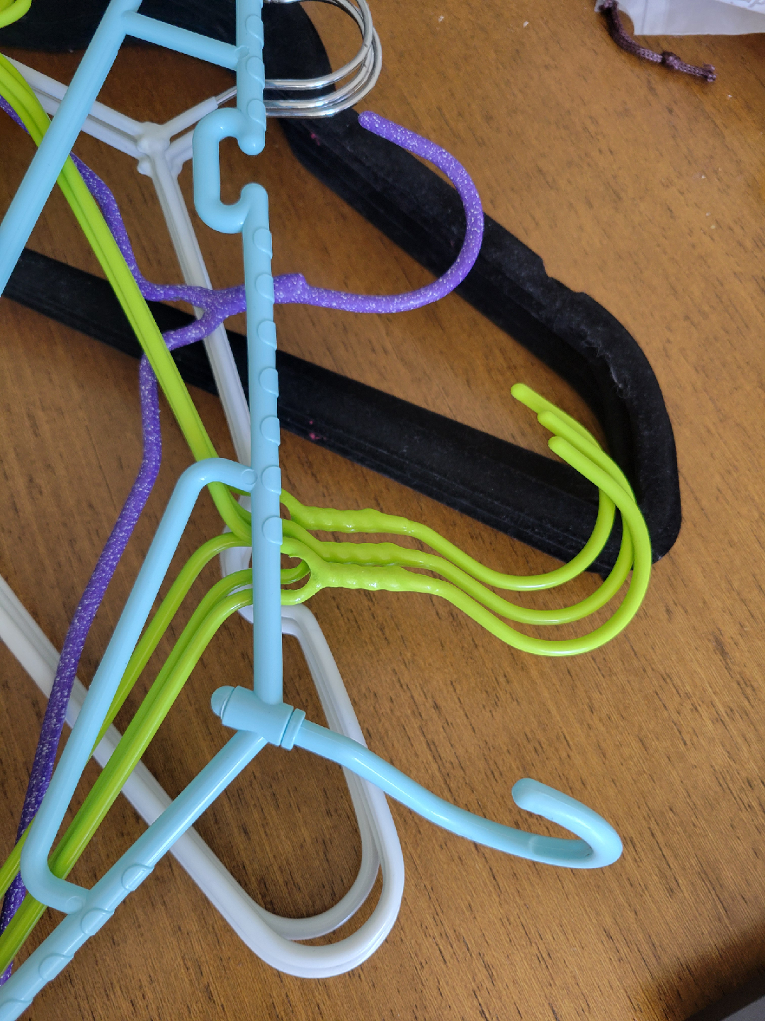 Selling a collection of assorted clothes hangers! There's a variety of colours and styles, including black velvet, white, purple glitter, green, and light blue plastic hangers. Perfect for organizing your closet or adding some colour to your wardrobe.