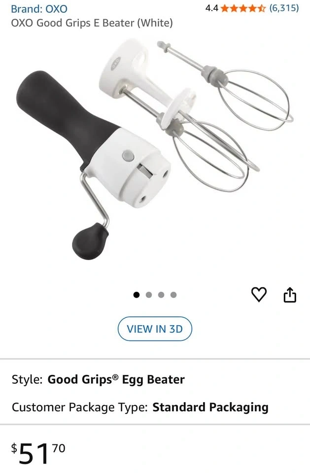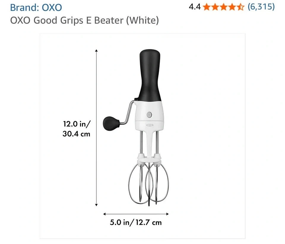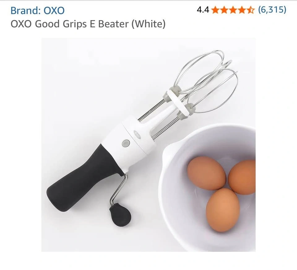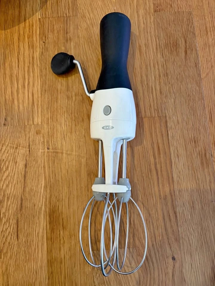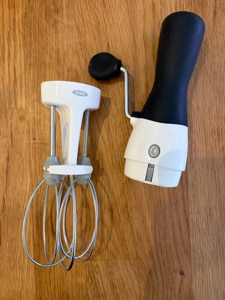 Handy OXO Good Grips hand beater. Great for whisking eggs, batters, or whipping cream. Works perfectly. Used once or twice only.
