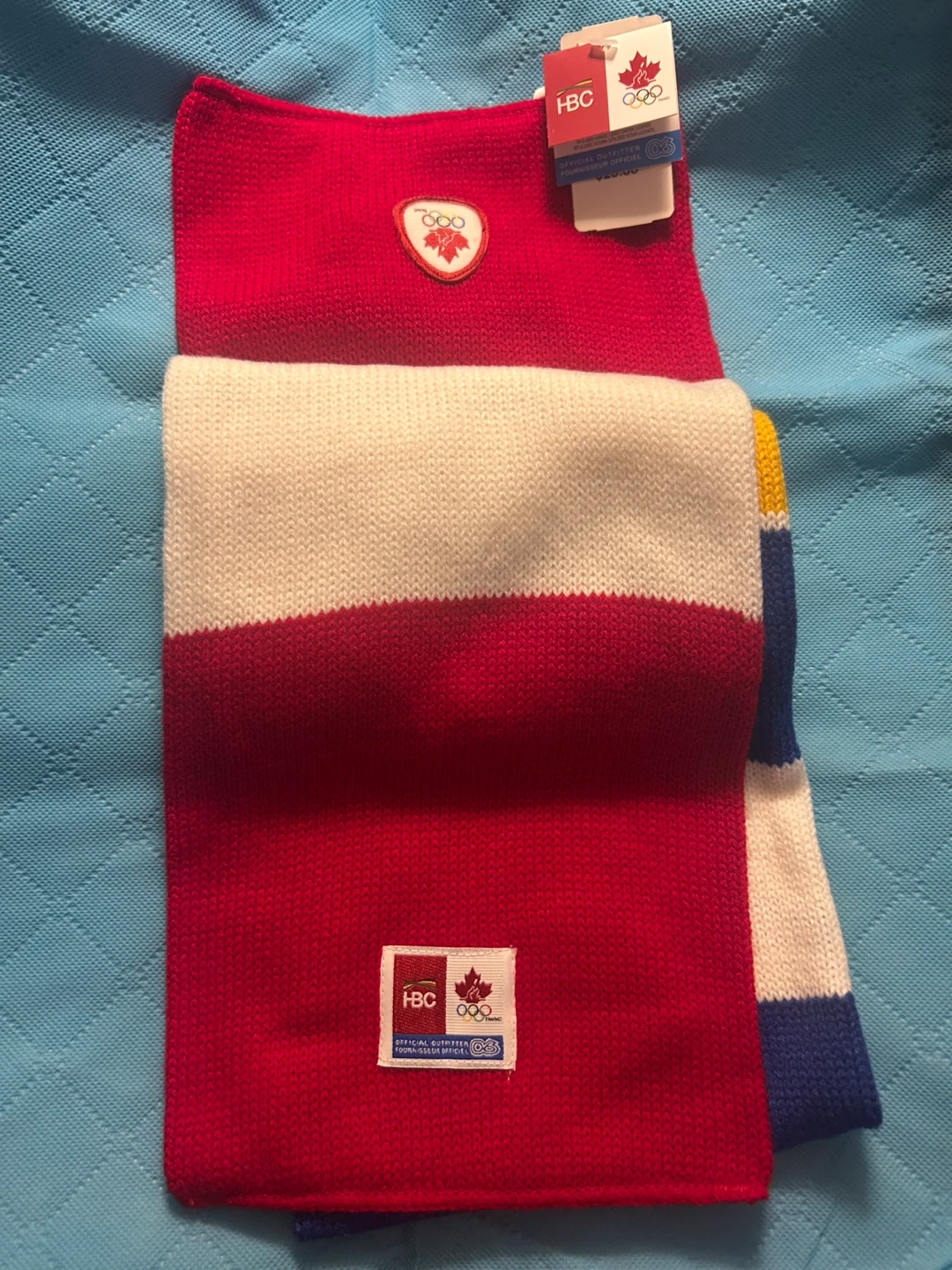 Here's a cozy HBC Olympics Canada scarf! Perfect for showing your Canadian pride or staying warm during the colder months. It features the iconic HBC and Olympics logos