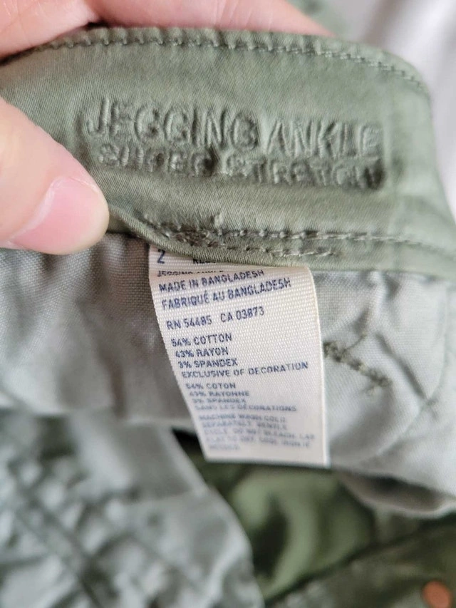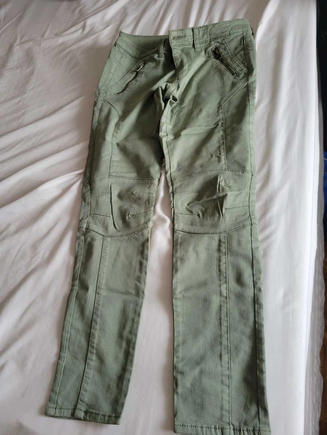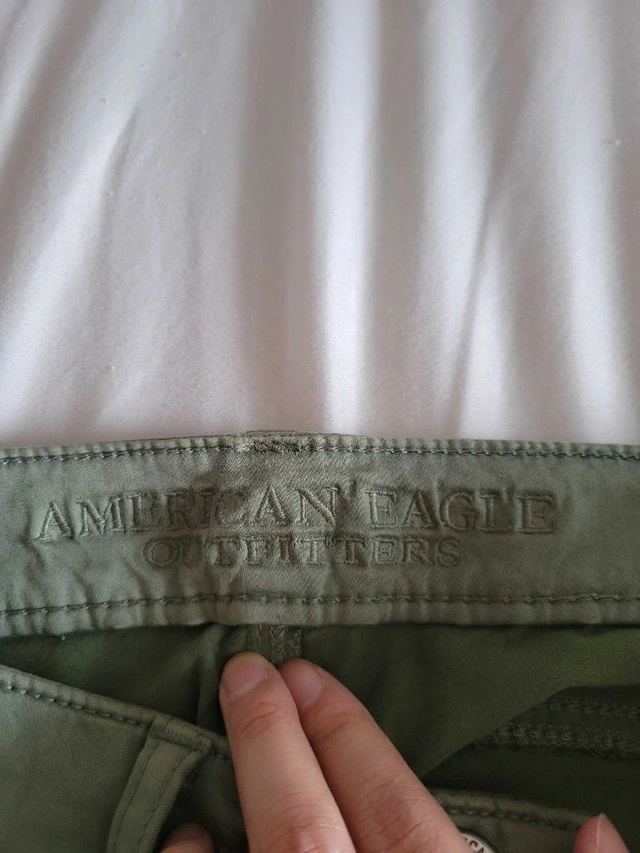 These American Eagle olive green Jeggings are a size 2 and in good used condition. They are super stretchy and feature a stylish design with zipper details. Perfect for a casual yet fashionable look! Brand: American Eagle Size: 2 Colour: Olive Green Style: Jeggings Material: See photos of tag If the ad is still up, yes, it's still available! Cashless payment: Yes Cash accepted: Yes