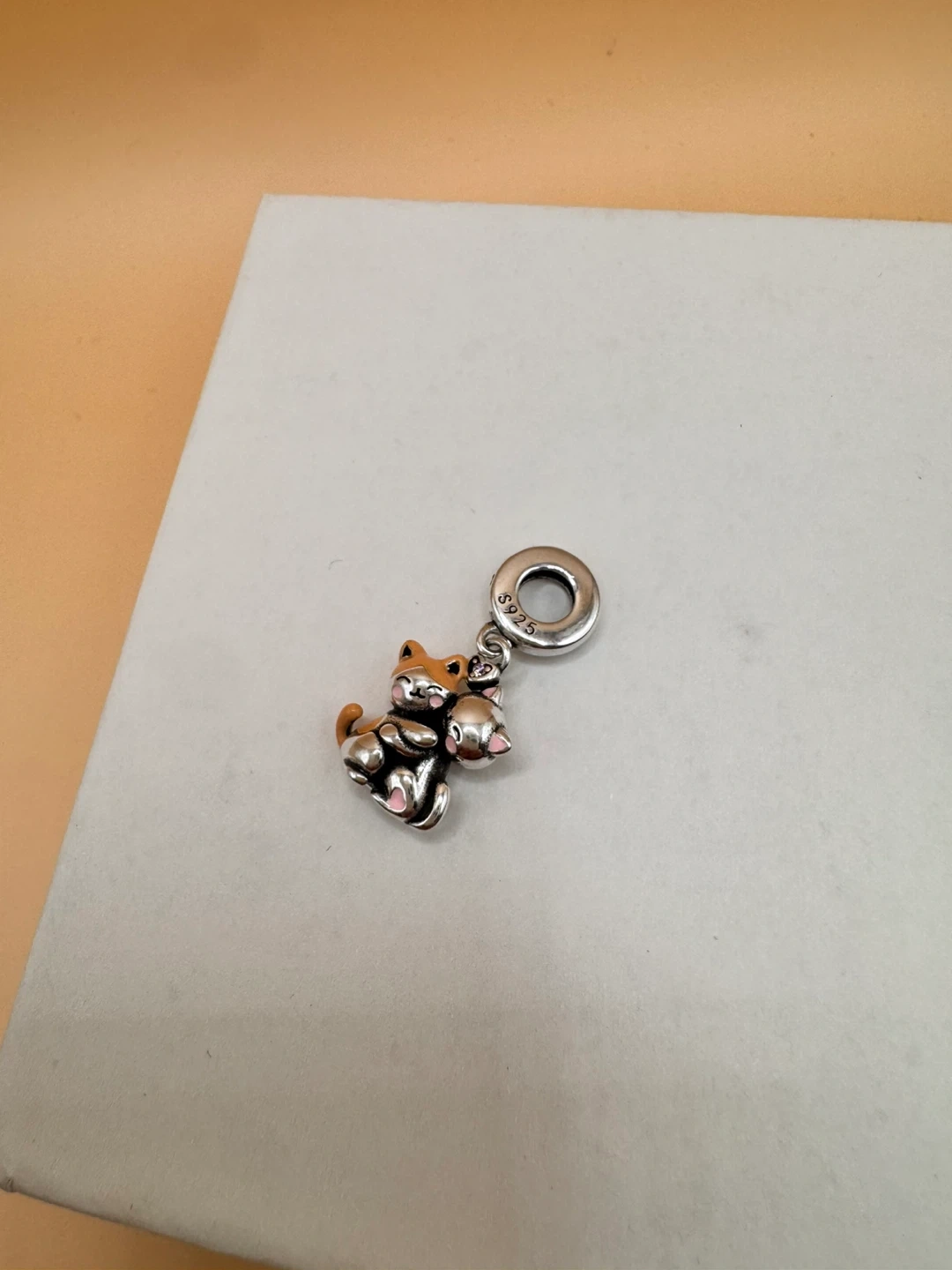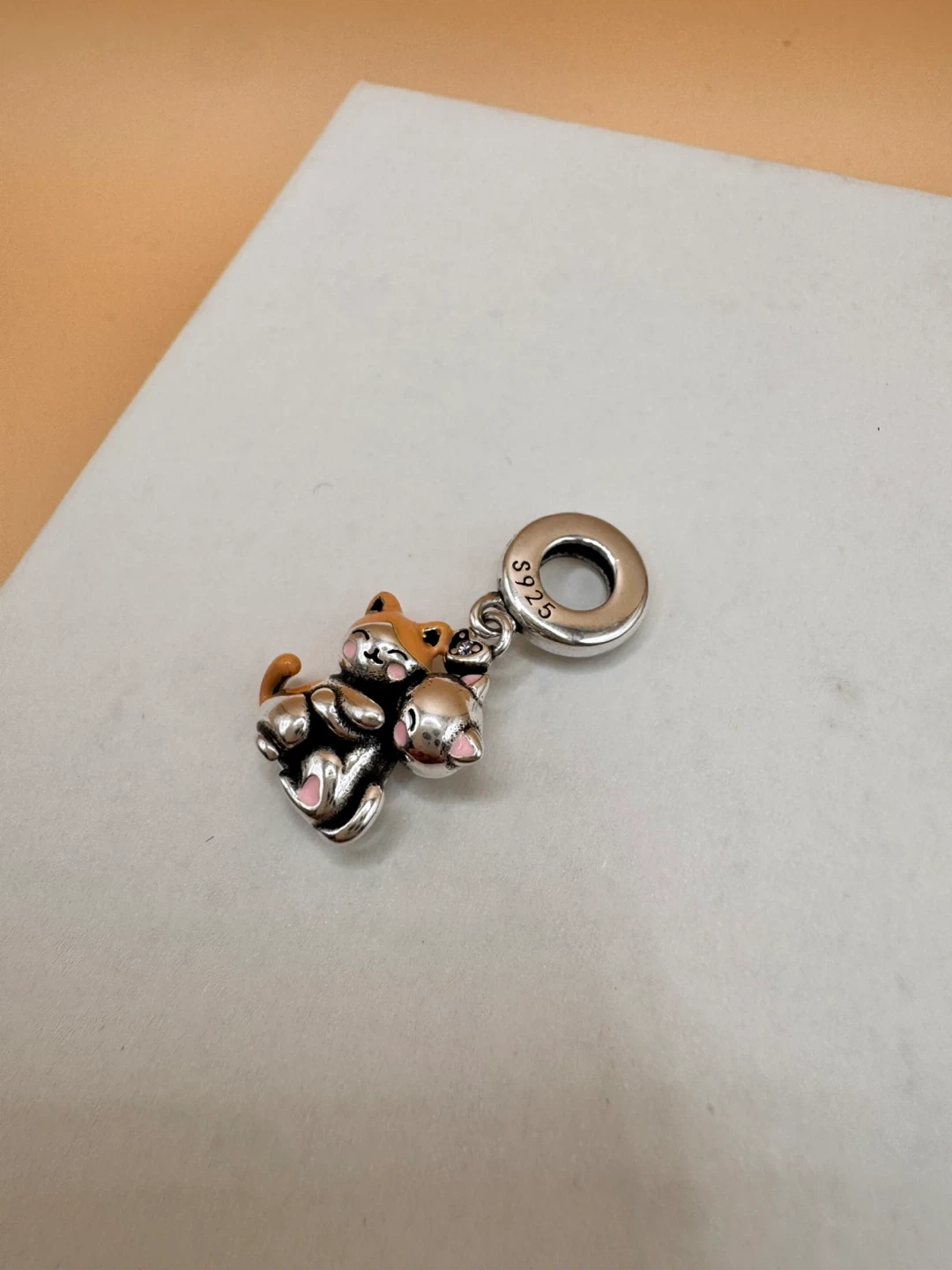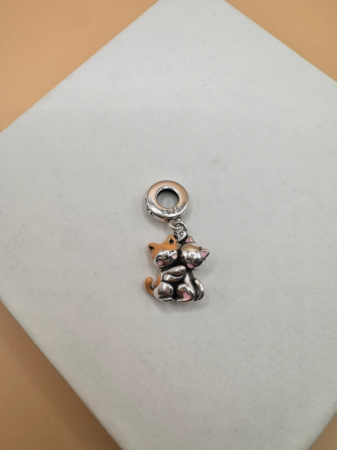 🐱This is a sterling silver charm featuring two adorable kittens embracing. It's marked S925, 92.5% pure silver. The charm has a loop for attaching to bracelets or necklaces. It's a sweet piece for any cat lover!