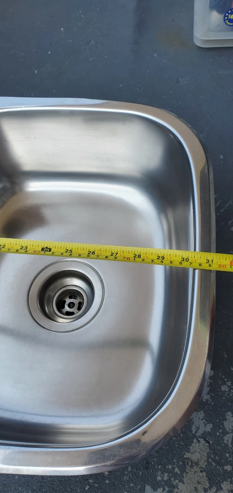 Selling a double stainless steel kitchen sink. It measures approximately 31 inches in length, 17 inches in width, and 8 inches in depth. Perfect for any kitchen upgrade!