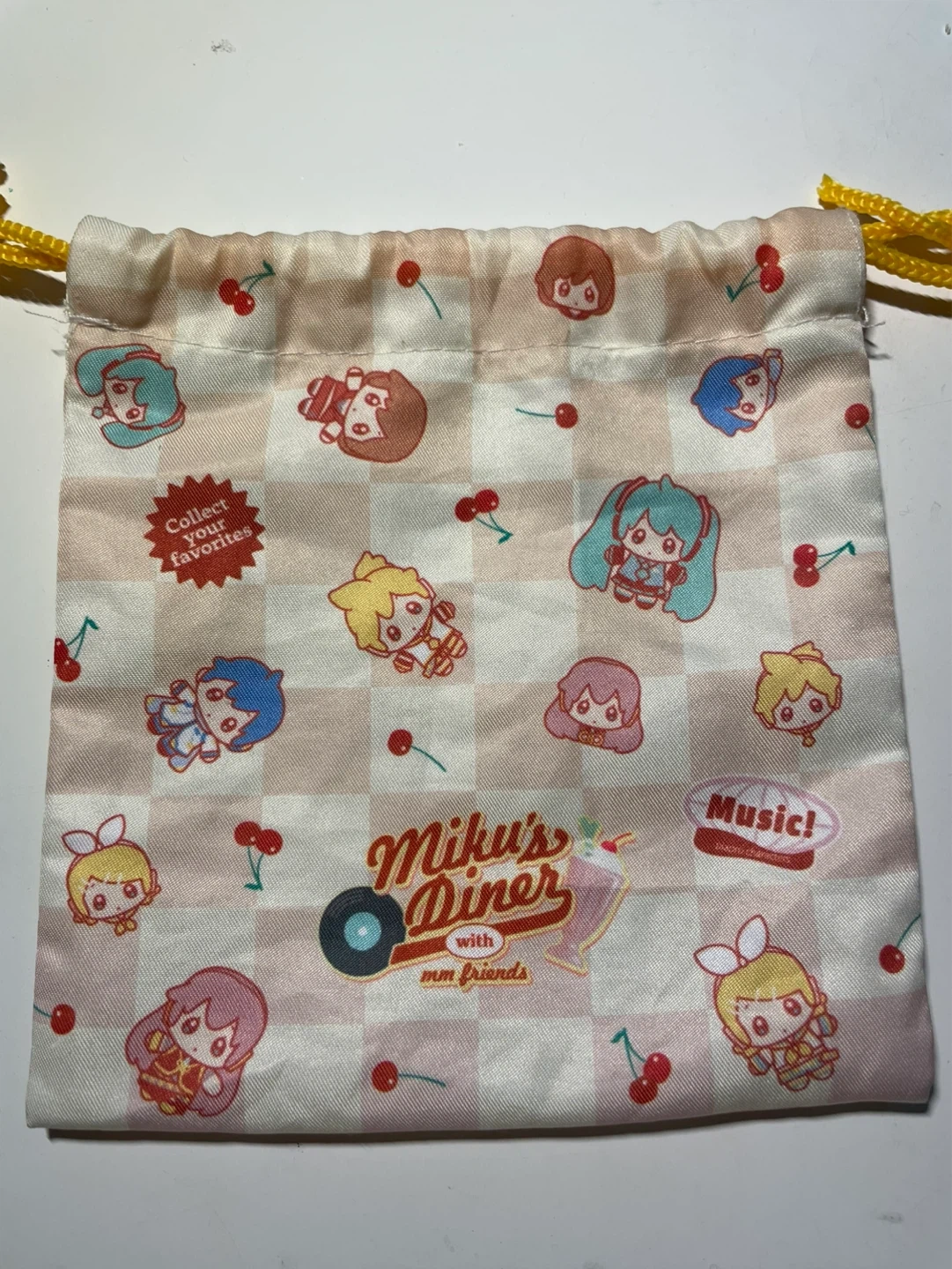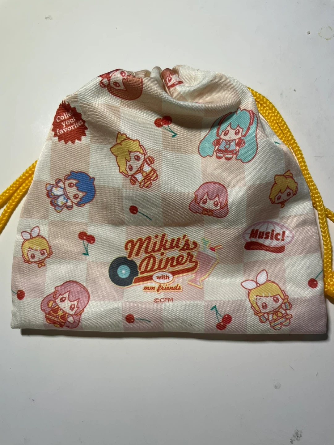 Small pouch (a bit larger than 5x5 inches) with a design of the main 6 vocaloids.