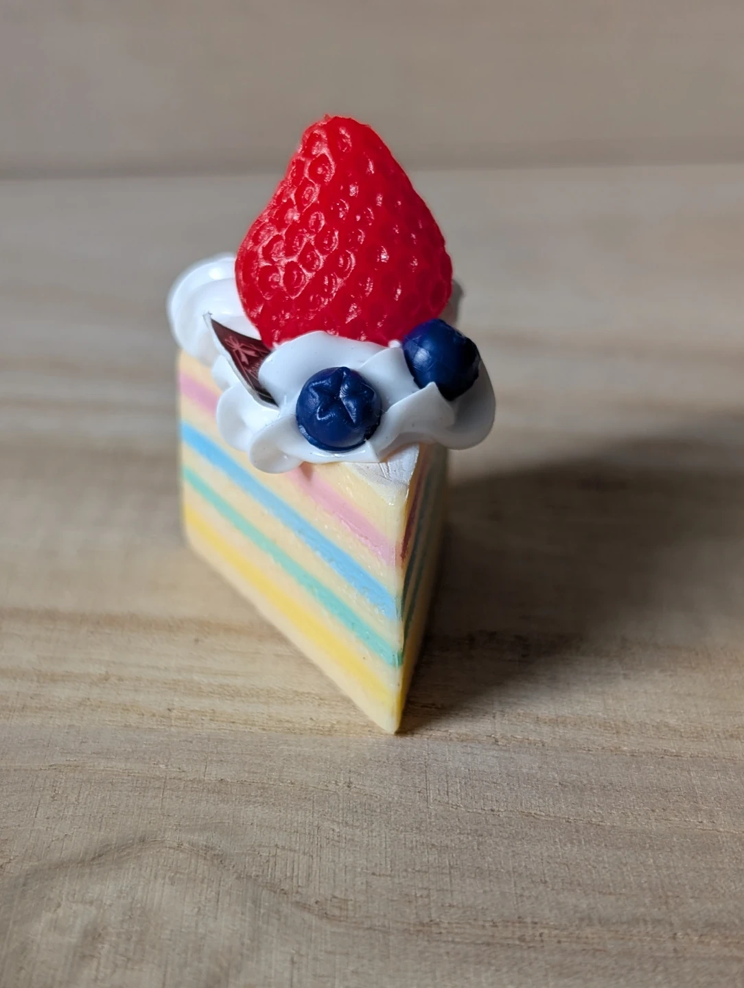 Rainbow Cake Slice Charm with Strawberry and Blueberries