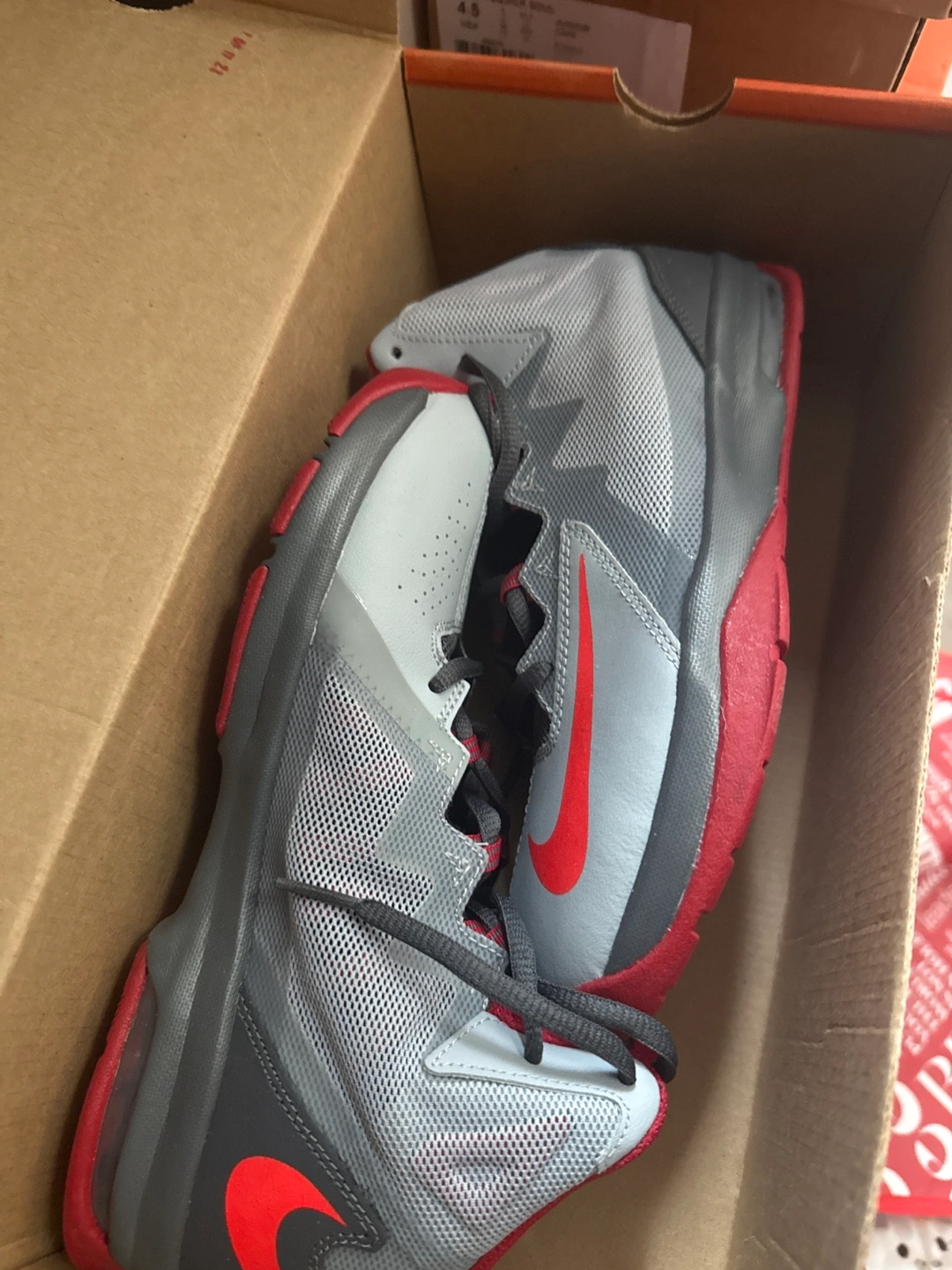 Nike Kids' Basketball Shoes - White/Red/Grey Size 6Y