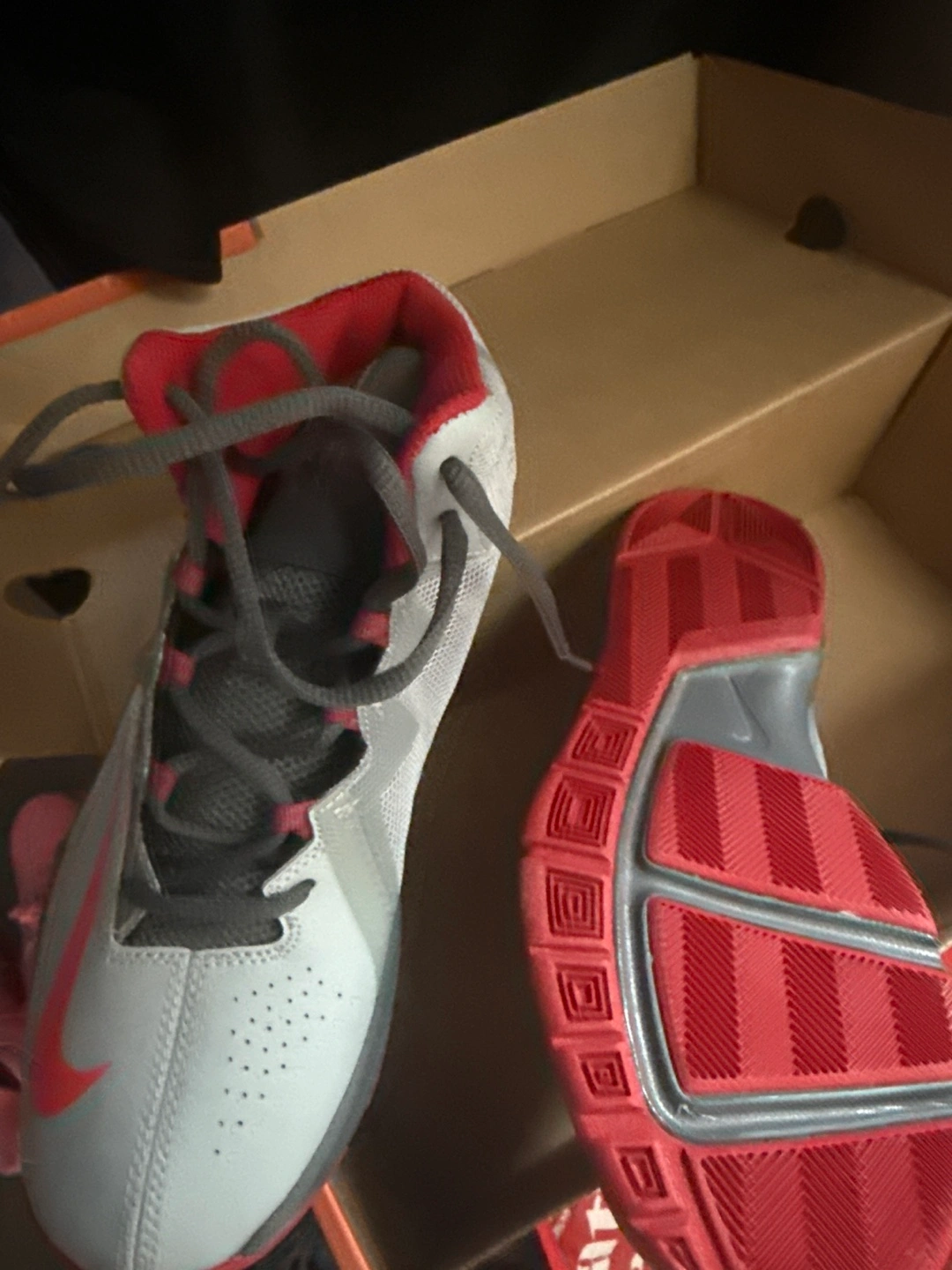 Nike Kids' Basketball Shoes - White/Red/Grey Size 6Y
