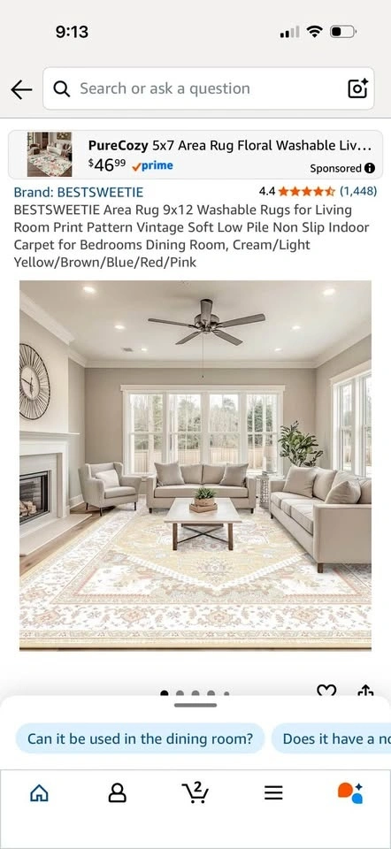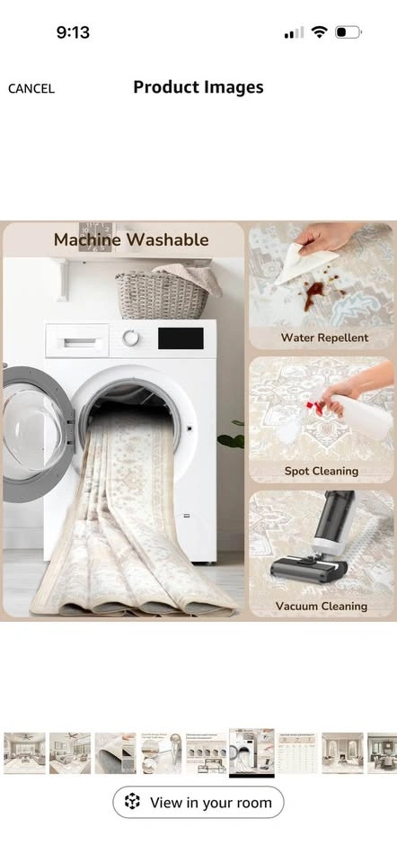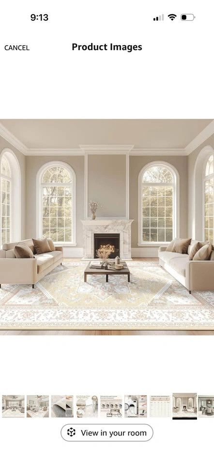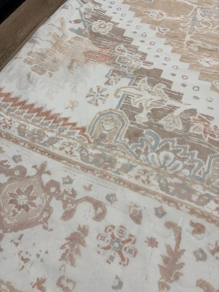 New, opened for photos. This 9x12 (270 cm x 360 cm) area rug is made of reinforced, skin-friendly Polyester, making it soft and comfortable. The material is also pet-friendly and can withstand pet scratching and high indoor traffic. It features a non-slip TPR backing for safety.