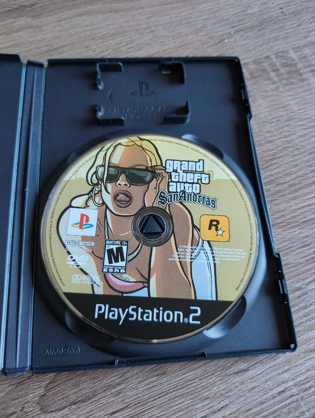 Selling a PlayStation 2 copy of Grand Theft Auto: San Andreas. This classic game is in good condition and ready for a new player to explore its vast open world. A must-have for any PS2 collector or fan of the series. It is used and has some wear. * Platform: PlayStation 2 * Genre: Action-Adventure * ESRB Rating: Mature 17+ If the ad is up, it's available!